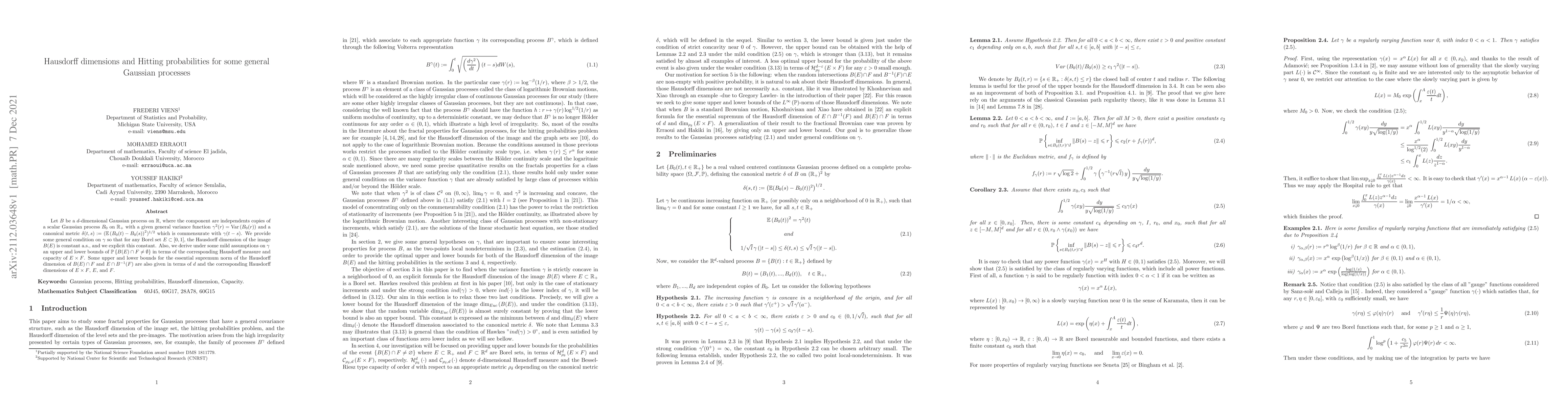 This paper investigates the Hausdorff dimensions of Gaussian process images and provides bounds on Hitting probabilities in terms of Hausdorff measures and capacities.