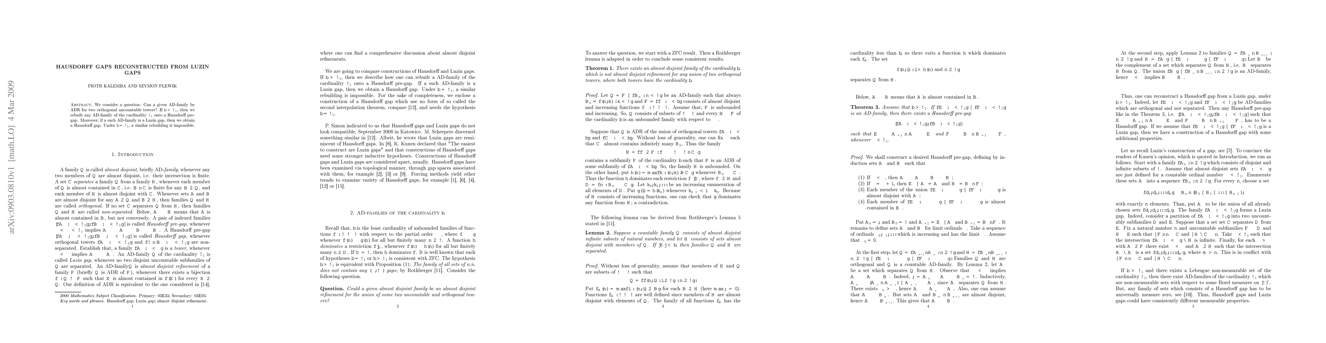 We consider a question: Can a given AD-family be ADR for two orthogonal uncountable towers? If $b > \omega_1$, then we rebuilt any AD-family of the cardinality $\omega_1$ onto a Hausdorff pre-gap. Moreover, if a such AD-family is a Luzin gap, then we obtain a Hausdorff gap. Under $b = \omega_1$, a similar rebuilding is impossible.