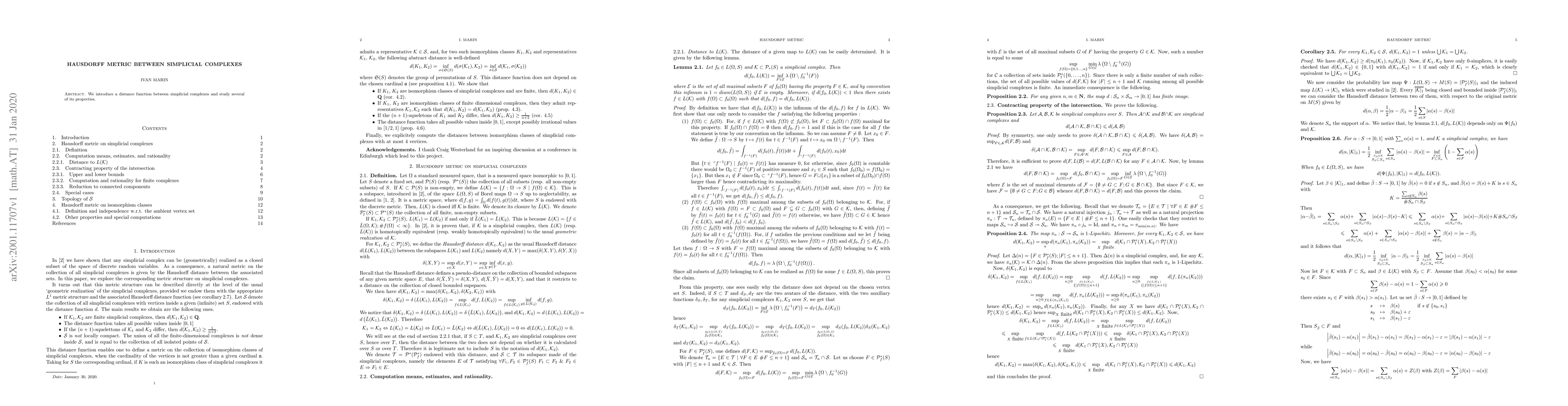 This paper introduces a novel distance function, known as the Hausdorff metric, to measure the dissimilarity between simplicial complexes and explores its fundamental properties. The study aims to provide a robust framework for comparing complex geometric structures.