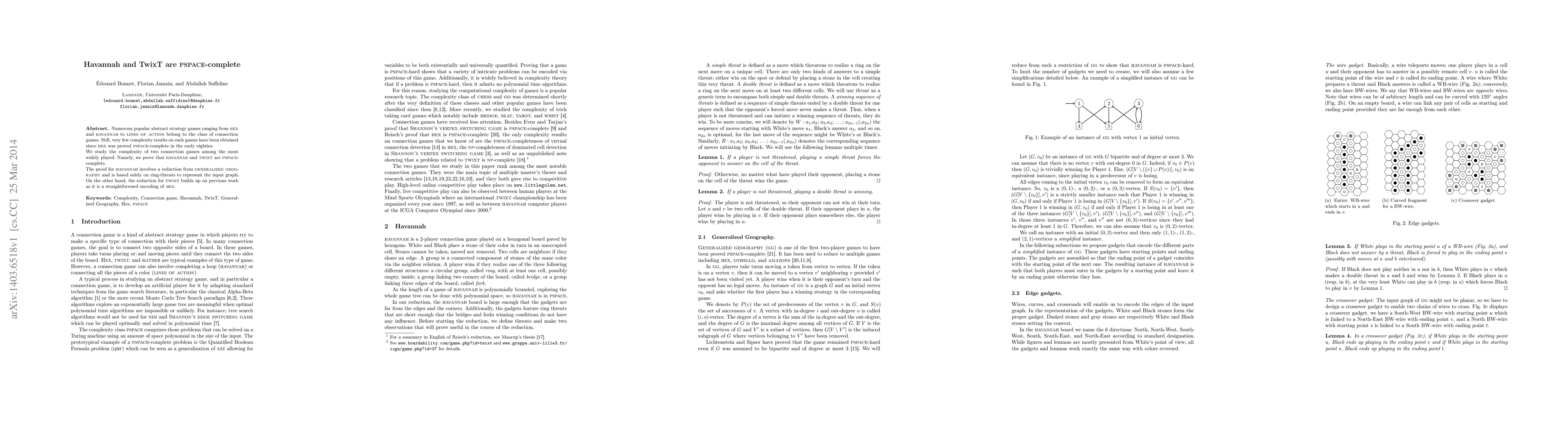 This paper demonstrates that the connection games Havannah and TwixT are PSPACE-complete. Havannah's complexity is shown through a reduction from Generalized Geography, while TwixT's complexity follows from its straightforward encoding of the already known PSPACE-complete game Hex.