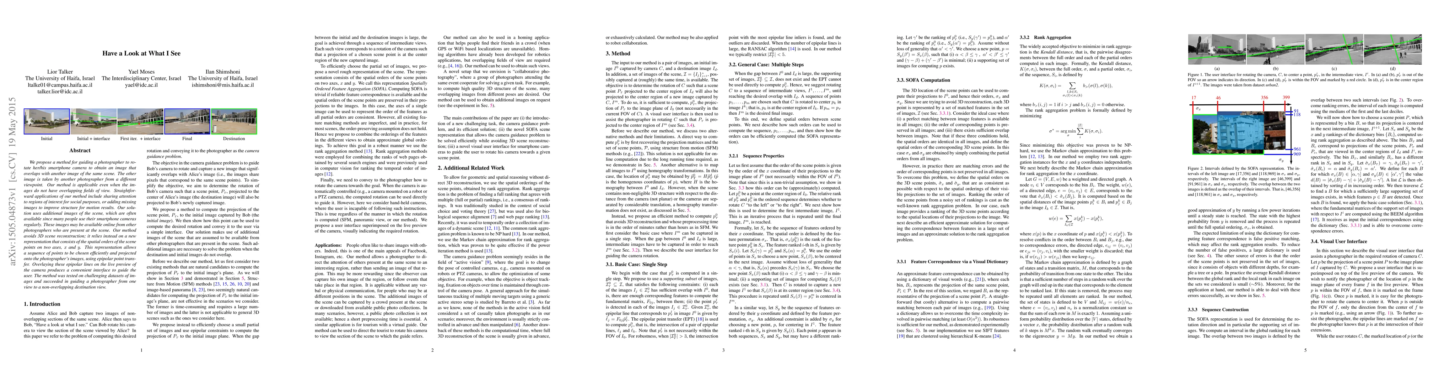 We propose a method for guiding a photographer to rotate her/his smartphone camera to obtain an image that overlaps with another image of the same scene. The other image is taken by another photographer from a different viewpoint. Our method is applicable even when the images do not have overlapping fields of view. Straightforward applications of our method include sharing attention to regions of interest for social purposes, or adding missing images to improve structure for motion results. Our solution uses additional images of the scene, which are often available since many people use their smartphone cameras regularly. These images may be available online from other photographers who are present at the scene. Our method avoids 3D scene reconstruction; it relies instead on a new representation that consists of the spatial orders of the scene points on two axes, x and y. This representation allows a sequence of points to be chosen efficiently and projected onto the photographers images, using epipolar point transfer. Overlaying these epipolar lines on the live preview of the camera produces a convenient interface to guide the user. The method was tested on challenging datasets of images and succeeded in guiding a photographer from one view to a non-overlapping destination view.