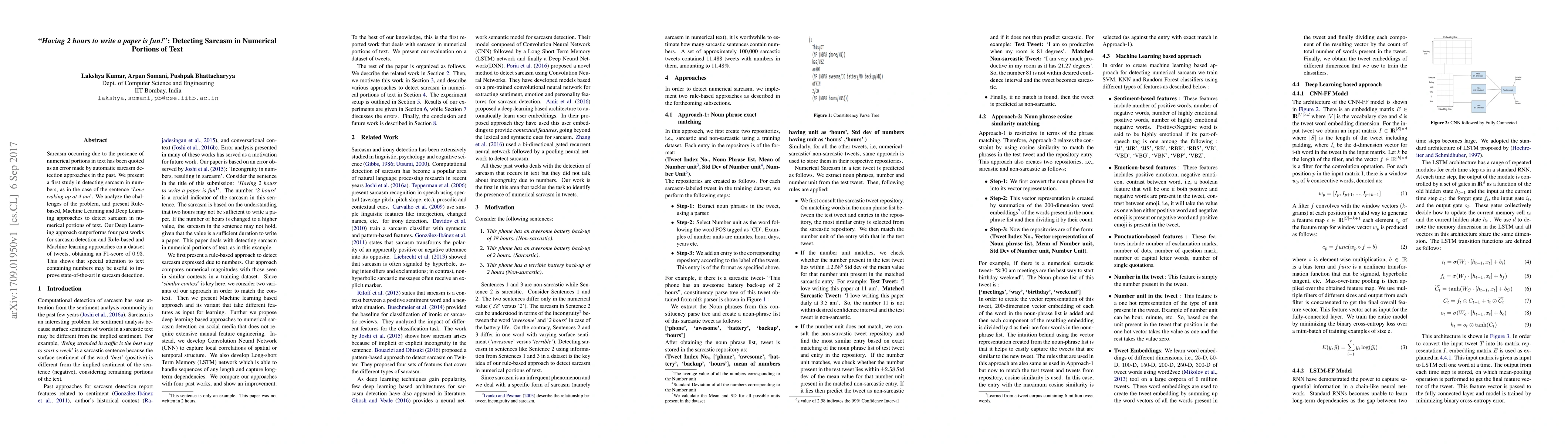 This study investigates the challenge of detecting sarcasm in sentences containing numerical portions, proposing Rule-based, Machine Learning, and Deep Learning approaches. The Deep Learning method achieves superior performance, outperforming previous works and traditional methods, indicating that numerical context can significantly aid sarcasm detection.