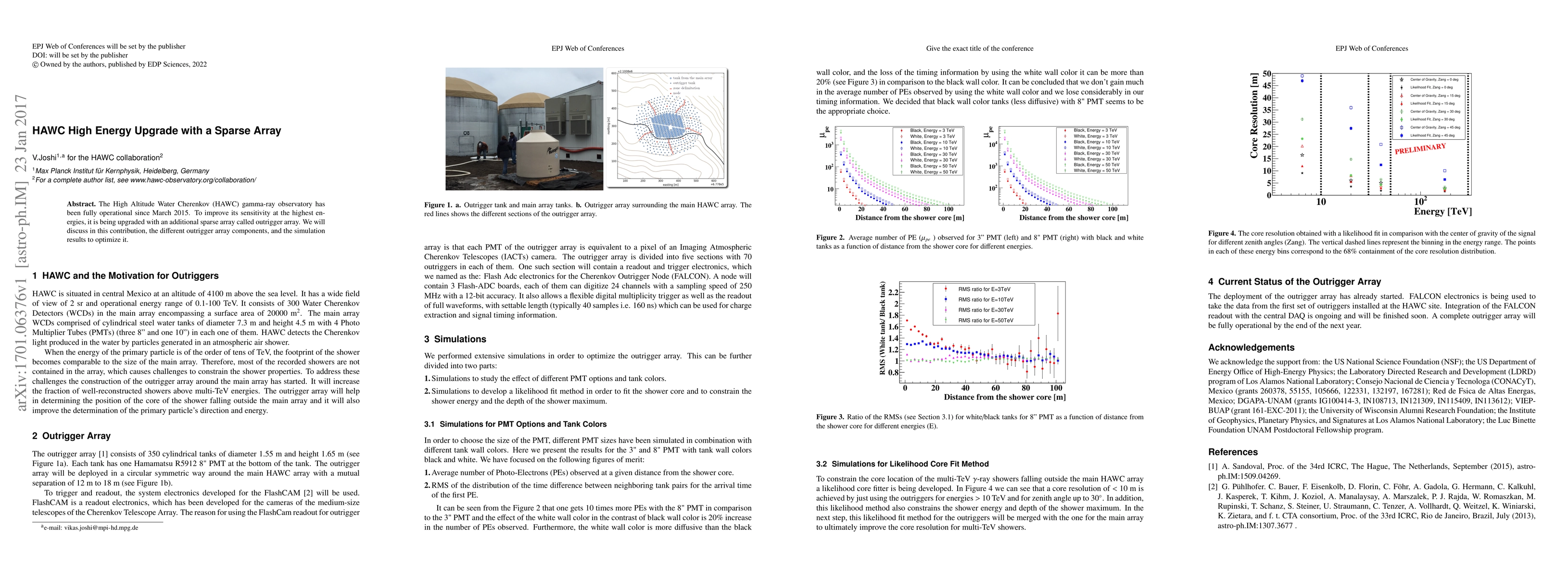 The High Altitude Water Cherenkov (HAWC) gamma-ray observatory is being upgraded with an outrigger array to enhance sensitivity at high energies. Simulation results are being used to optimize the design and performance of the new sparse array components.