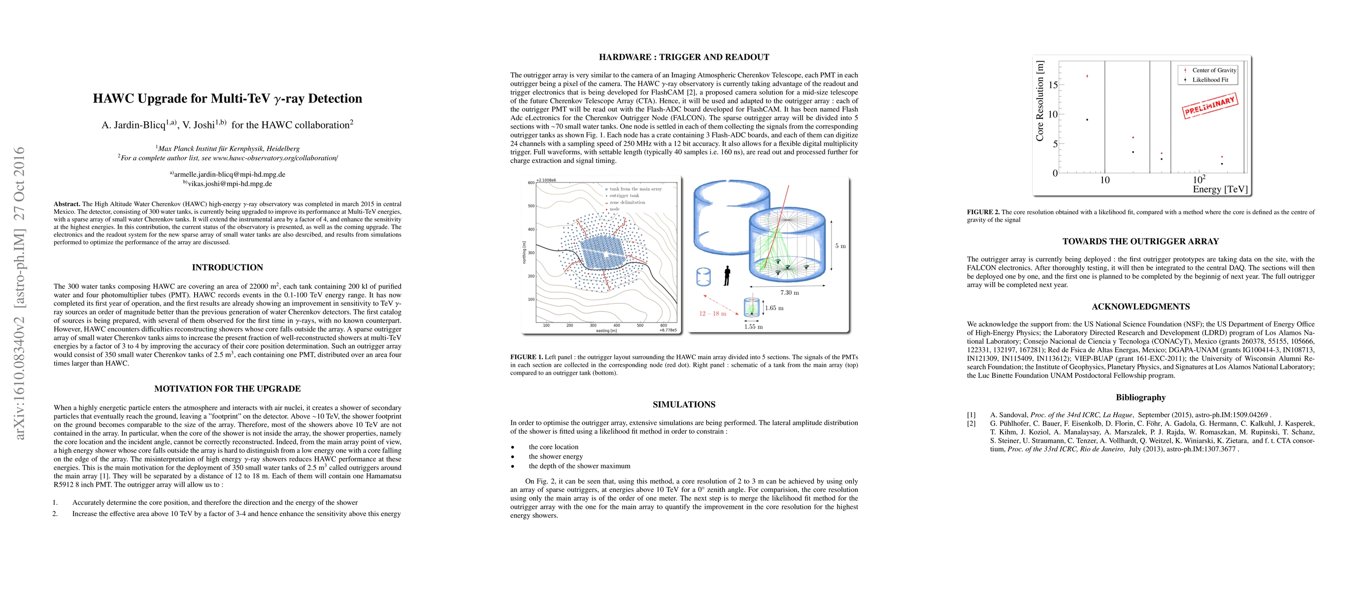 The High Altitude Water Cherenkov (HAWC) observatory in Mexico is being upgraded with an additional 300 small water tanks to improve its detection of Multi-TeV gamma rays. This upgrade will quadruple the instrumental area and enhance sensitivity at the highest energies, with optimized performance through simulations of new electronics and readout systems.