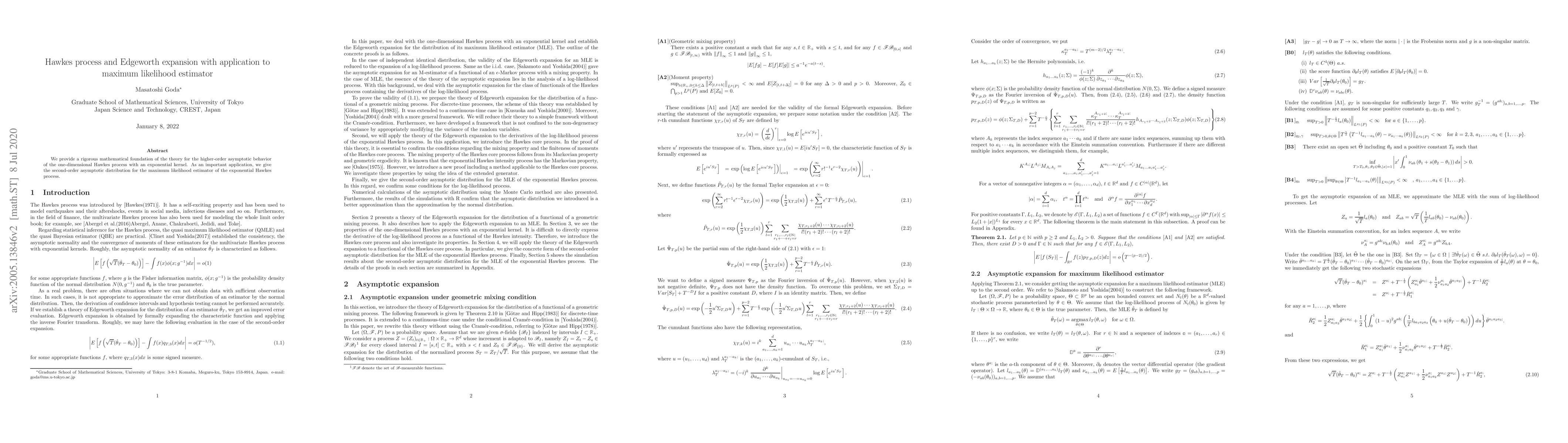 This research paper provides a mathematical foundation for the asymptotic behavior of the Hawkes process, offering a solution to estimate maximum likelihood estimators in situations with limited data, and presents simulation results.