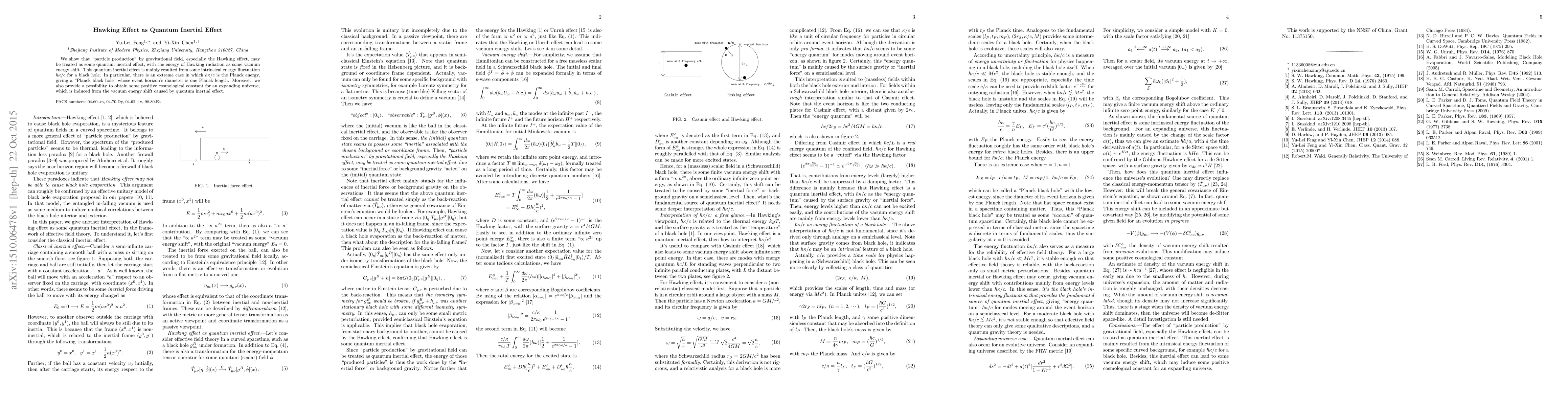 We show that "particle production" by gravitational field, especially the Hawking effect, may be treated as some quantum inertial effect, with the energy of Hawking radiation as some vacuum energy shift. This quantum inertial effect is mainly resulted from some intrinsical energy fluctuation $\hbar\kappa/c$ for a black hole. In particular, there is an extreme case in which $\hbar\kappa/c$ is the Planck energy, giving a "Planck black hole" whose event horizon's diameter is one Planck length. Moreover, we also provide a possibility to obtain some positive cosmological constant for an expanding universe, which is induced from the vacuum energy shift caused by quantum inertial effect.