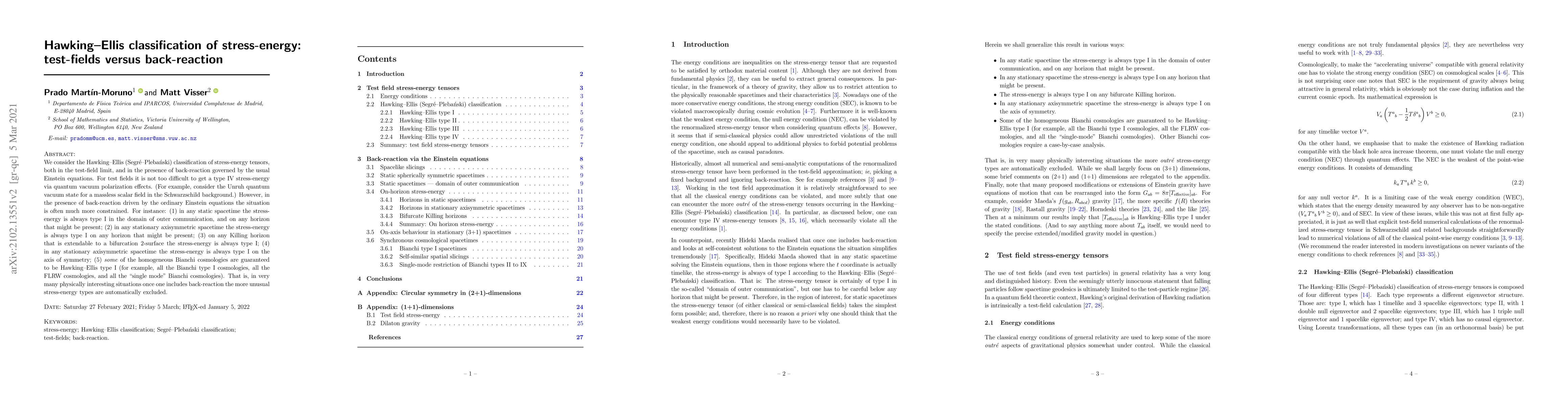 This paper examines the Hawking-Ellis classification of stress-energy tensors in both test-field scenarios and with back-reaction from Einstein's equations. It finds that while test fields can produce type IV stress-energy, back-reaction typically constrains the stress-energy to type I in various spacetimes, excluding more unusual types.