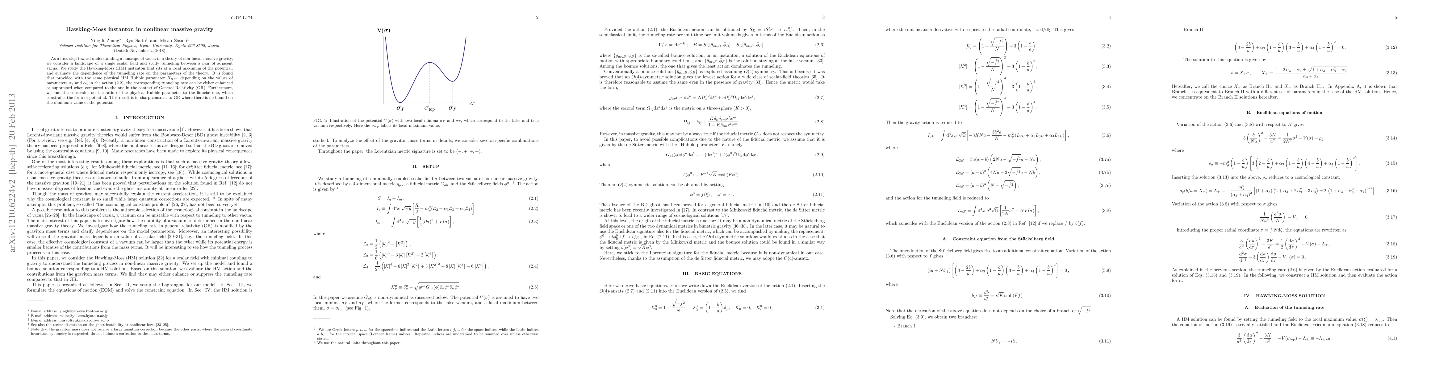 The paper presents a detailed analysis of the Hawking-Moss instanton in nonlinear massive gravity, deriving its Euclidean action and examining the impact of graviton mass terms on tunneling rates.