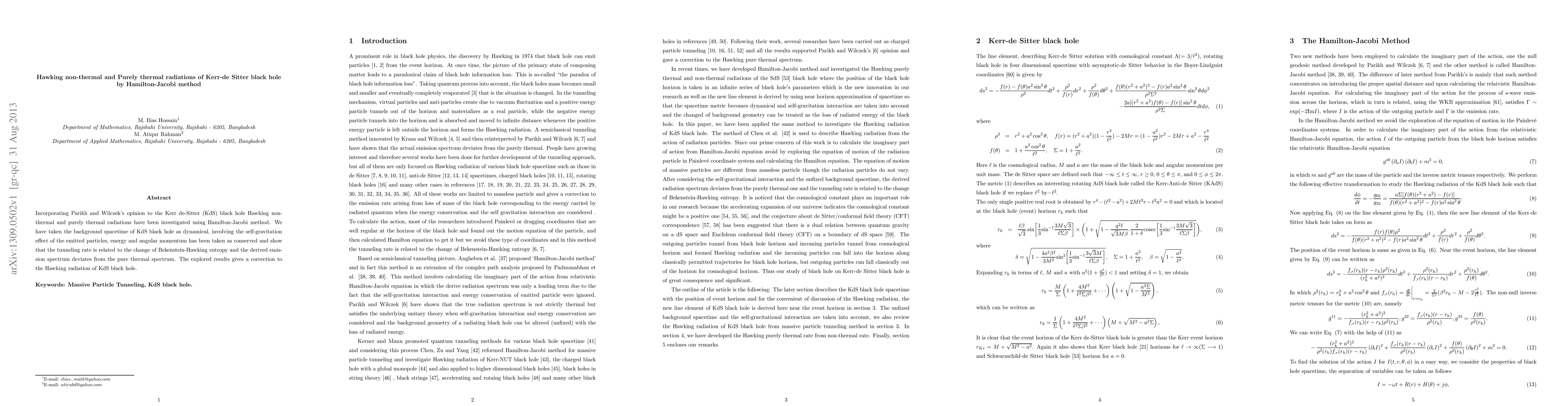 Incorporating Parikh and Wilczek's opinion to the Kerr de-Sitter (KdS) black hole Hawking non-thermal and purely thermal radiations have been investigated using Hamilton-Jacobi method. We have taken the background spacetime of KdS black hole as dynamical, involving the self-gravitation effect of the emitted particles, energy and angular momentum has been taken as conserved and show that the tunneling rate is related to the change of Bekenstein-Hawking entropy and the derived emission spectrum deviates from the pure thermal spectrum. The explored results gives a correction to the Hawking radiation of KdS black hole.