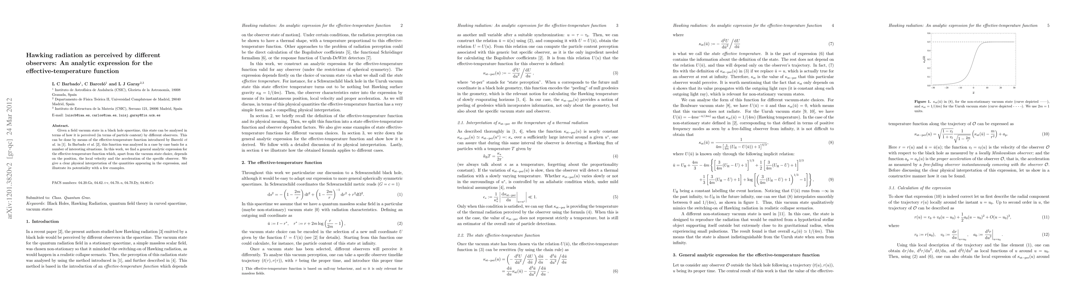 This paper derives a general analytic expression for the effective-temperature function that describes how Hawking radiation is perceived by different observers in a black hole spacetime, depending on their position, velocity, and acceleration. It provides a clear physical interpretation of the involved quantities and demonstrates its application through specific examples.