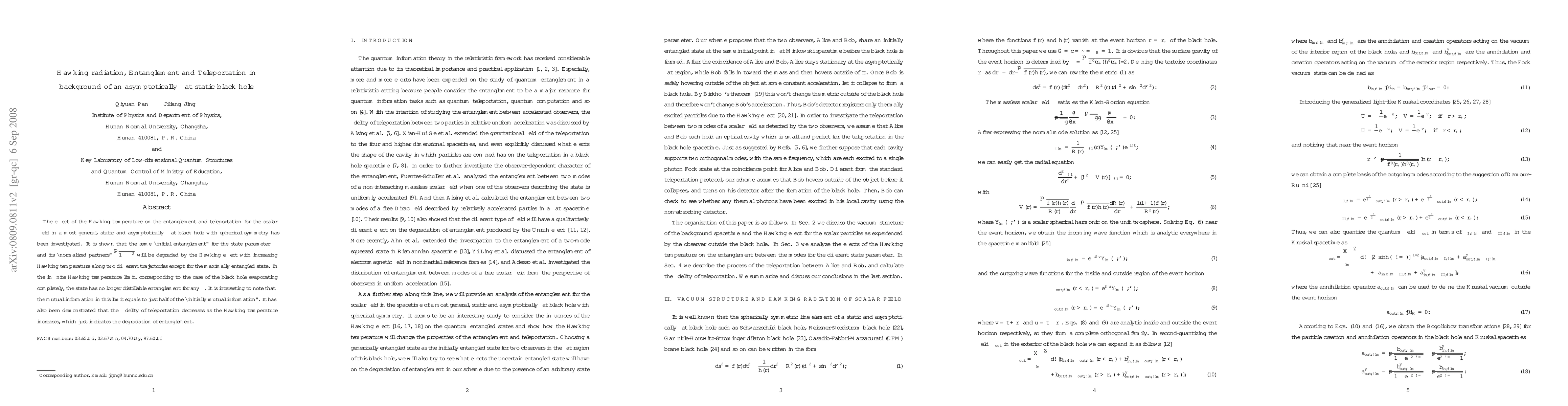 The effect of the Hawking temperature on the entanglement and teleportation for the scalar field in a most general, static and asymptotically flat black hole with spherical symmetry has been investigated. It is shown that the same "initial entanglement" for the state parameter $\alpha$ and its "normalized partners" $\sqrt{1-\alpha^{2}}$ will be degraded by the Hawking effect with increasing Hawking temperature along two different trajectories except for the maximally entangled state. In the infinite Hawking temperature limit, corresponding to the case of the black hole evaporating completely, the state has no longer distillable entanglement for any $\alpha$. It is interesting to note that the mutual information in this limit equals to just half of the "initially mutual information". It has also been demonstrated that the fidelity of teleportation decreases as the Hawking temperature increases, which just indicates the degradation of entanglement.
