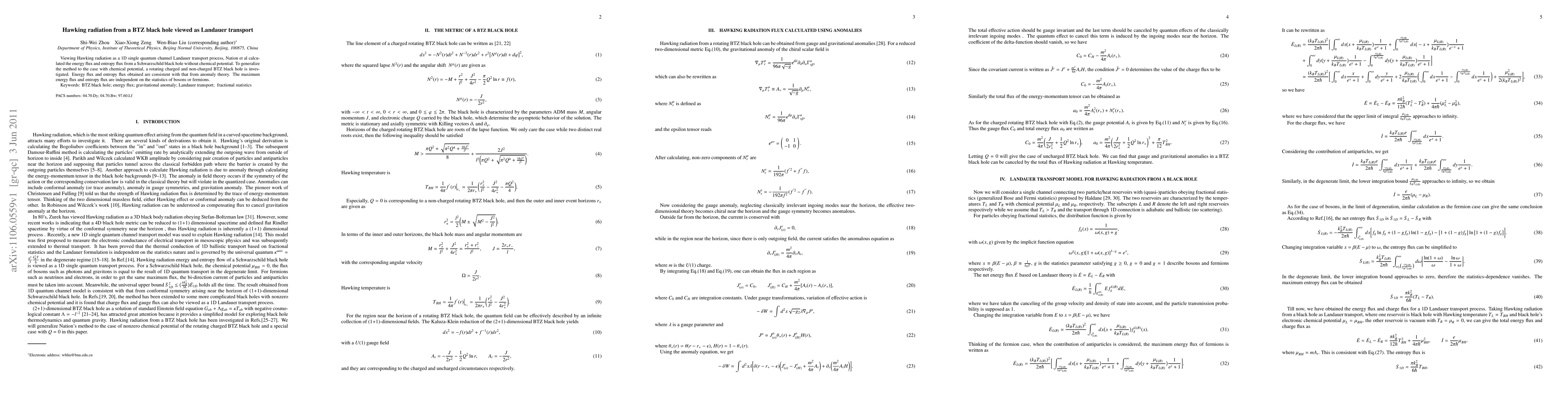 This paper generalizes the Landauer transport method to BTZ black holes, demonstrating that Hawking radiation can be viewed as a 1D quantum channel. It finds that energy and entropy fluxes from rotating charged and non-charged BTZ black holes align with predictions from anomaly theory, with maximum fluxes independent of particle statistics.