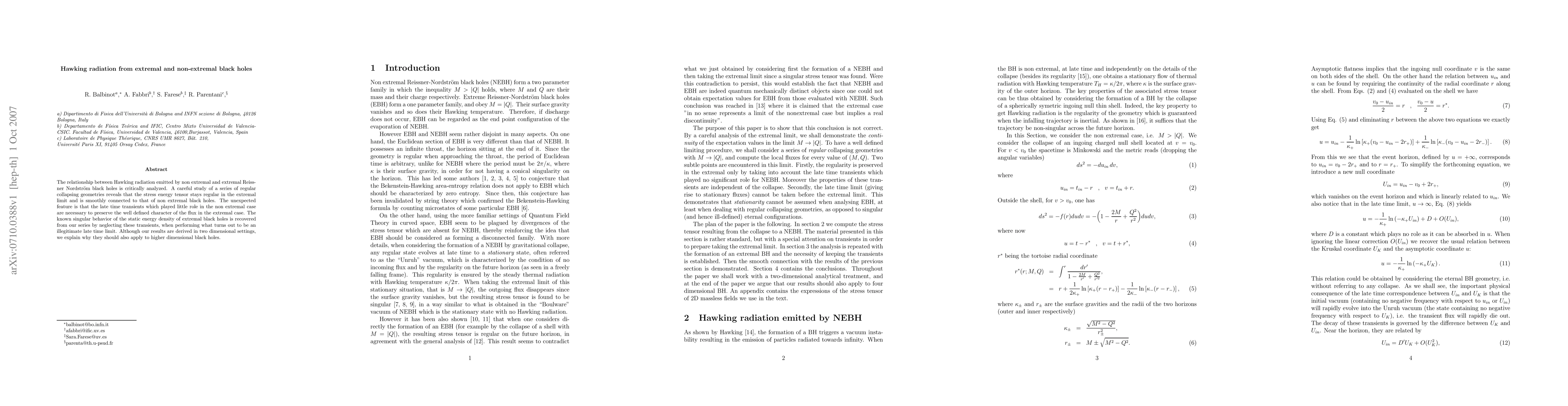 The relationship between Hawking radiation emitted by non extremal and extremal Reissner Nordstrom black holes is critically analyzed. A careful study of a series of regular collapsing geometries reveals that the stress energy tensor stays regular in the extremal limit and is smoothly connected to that of non extremal black holes. The unexpected feature is that the late time transients which played little role in the non extremal case are necessary to preserve the well defined character of the flux in the extremal case. The known singular behavior of the static energy density of extremal black holes is recovered from our series by neglecting these transients, when performing what turns out to be an illegitimate late time limit. Although our results are derived in two dimensional settings, we explain why they should also apply to higher dimensional black holes.