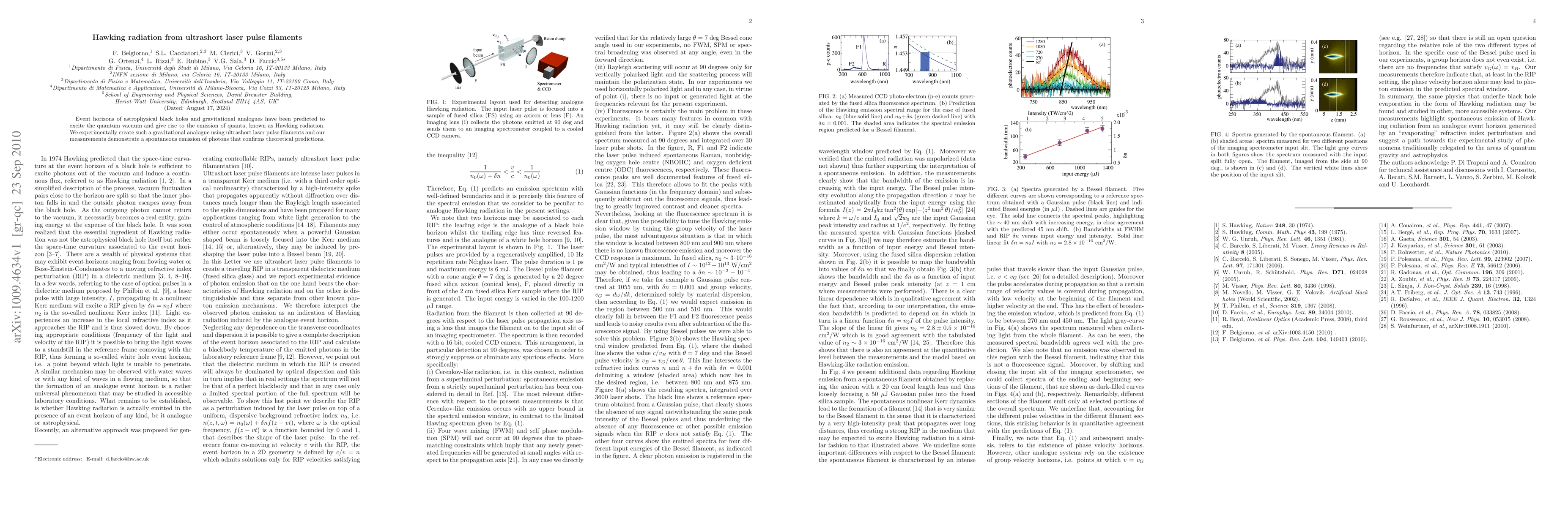 This research experimentally creates a gravitational analogue using ultrashort laser pulse filaments to mimic event horizons, demonstrating spontaneous photon emission that aligns with theoretical predictions of Hawking radiation.