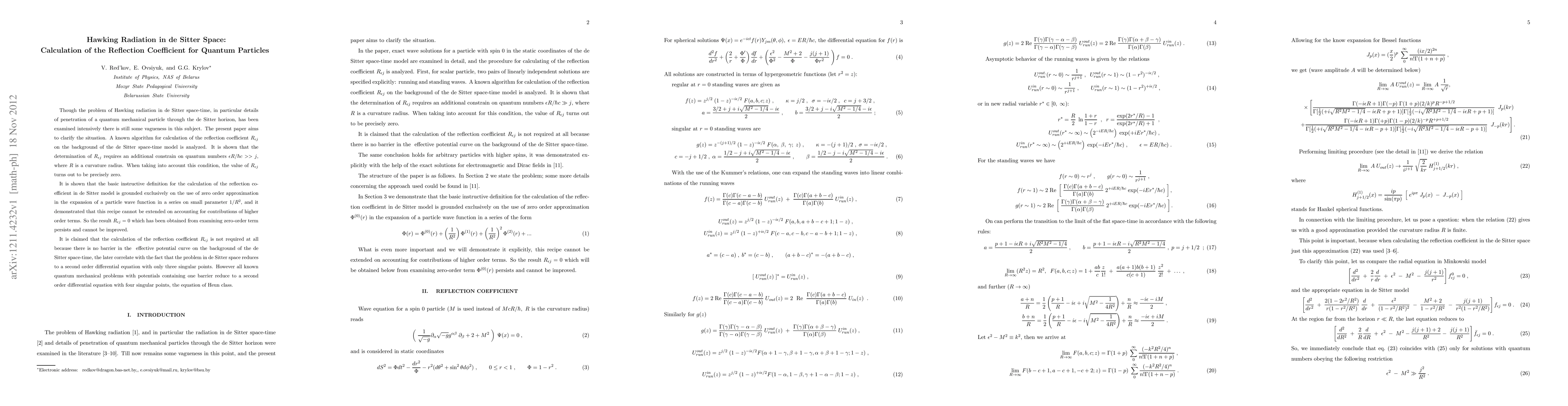 Though the problem of Hawking radiation in de Sitter space-time, in particular details of penetration of a quantum mechanical particle through the de Sitter horizon, has been examined intensively there is still some vagueness in this subject. The present paper aims to clarify the situation. A known algorithm for calculation of the reflection coefficient $R_{\epsilon j}$ on the background of the de Sitter space-time model is analyzed. It is shown that the determination of $R_{\epsilon j}$ requires an additional constrain on quantum numbers $\epsilon R / \hbar c >> j$, where $R$ is a curvature radius. When taking into account this condition, the value of $R_{\epsilon j}$ turns out to be precisely zero. It is shown that the basic instructive definition for the calculation of the reflection coefficient in de Sitter model is grounded exclusively on the use of zero order approximation in the expansion of a particle wave function in a series on small parameter $1/R^{2}$, and it demonstrated that this recipe cannot be extended on accounting for contributions of higher order terms. So the result $R_{\epsilon j}=0$ which has been obtained from examining zero-order term persists and cannot be improved. It is claimed that the alculation of the reflection coefficient $R_{\epsilon j}$ is not required at all because there is no barrier in the effective potential curve on the background of the de Sitter space-time, the later correlate with the fact that the problem in de Sitter space reduces to a second order differential equation with only three singular points. However all known quantum mechanical problems with potentials containing one barrier reduce to a second order differential equation with four singular points, the equation of Heun class.
