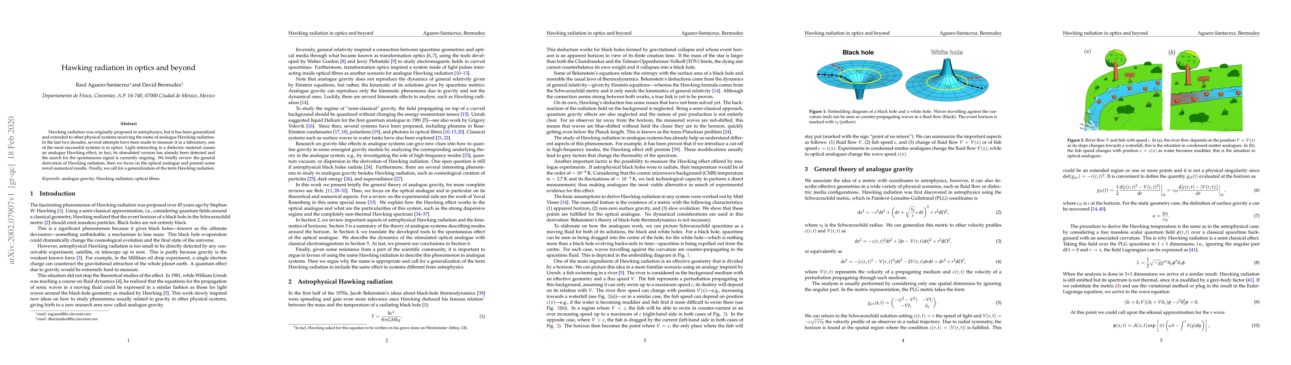 This paper reviews the derivation of Hawking radiation and highlights its analogue in optics, where light in a dielectric material exhibits an analogue Hawking effect. Novel numerical results are presented, and the paper calls for a broader definition of Hawking radiation beyond its original astrophysical context.