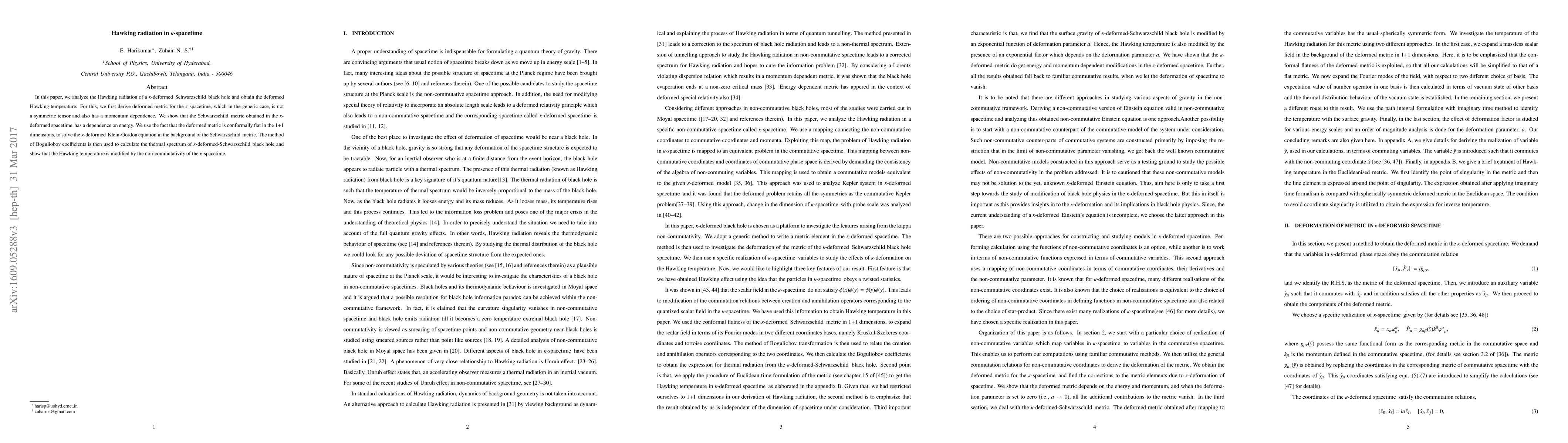 This paper investigates Hawking radiation for a kappa-deformed Schwarzschild black hole, deriving a deformed metric that depends on energy and non-commutativity. It uses the method of Bogoliubov coefficients to determine a modified Hawking temperature due to the kappa-spacetime's non-symmetric tensor nature.