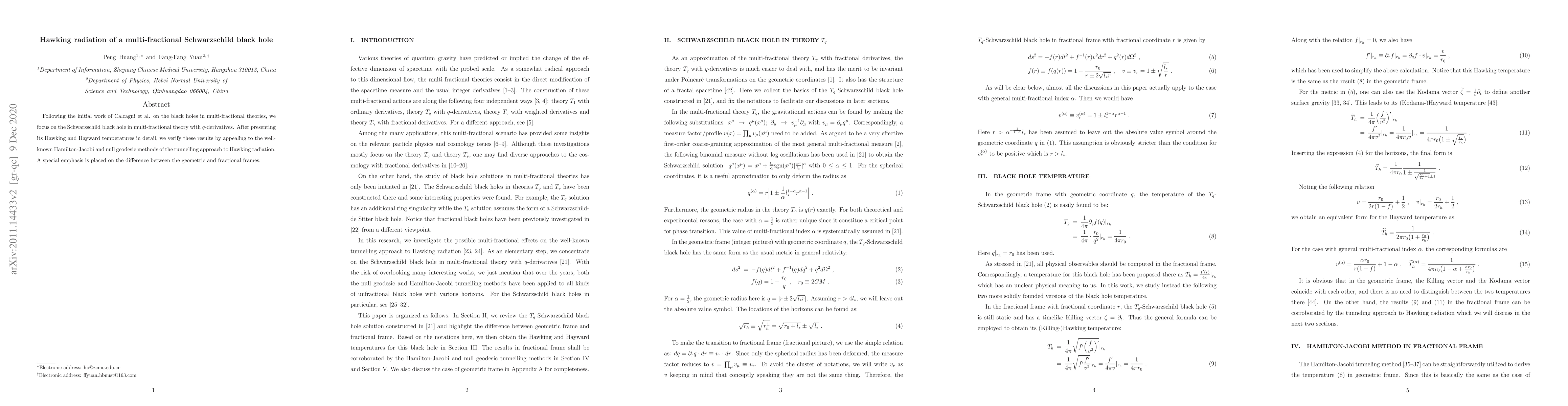 This paper investigates the Hawking radiation of a Schwarzschild black hole within the framework of multi-fractional theory using q-derivatives. It derives the Hawking and Hayward temperatures and validates these results through Hamilton-Jacobi and null geodesic methods, highlighting distinctions between geometric and fractional perspectives.