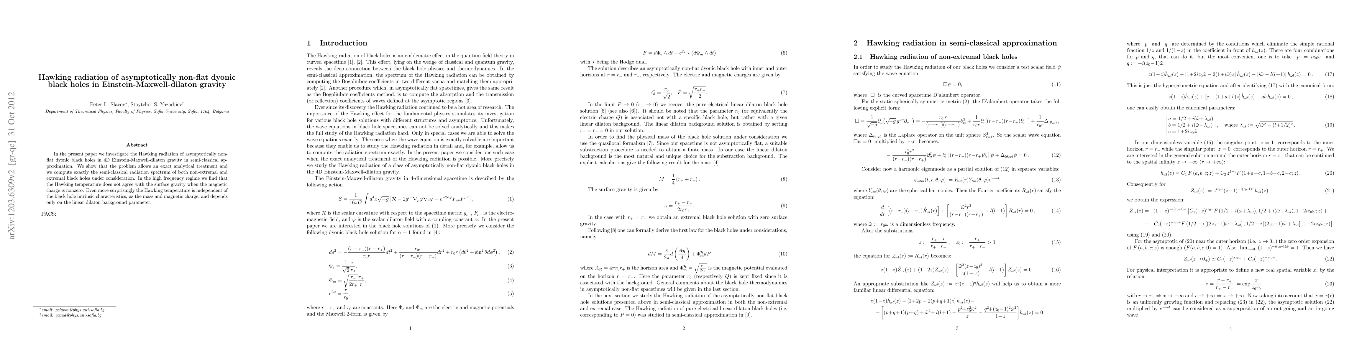 In the present paper we investigate the Hawking radiation of asymptotically non-flat dyonic black holes in 4D Einstein-Maxwell-dilaton gravity in semi-classical approximation. We show that the problem allows an exact analytical treatment and we compute exactly the semi-classical radiation spectrum of both non-extremal and extremal black holes under consideration. In the high frequency regime we find that the Hawking temperature does not agree with the surface gravity when the magnetic charge is nonzero. Even more surprisingly the Hawking temperature is independent of the black hole intrinsic characteristics, as the mass and magnetic charge, and depends only on the linear dilaton background parameter.
