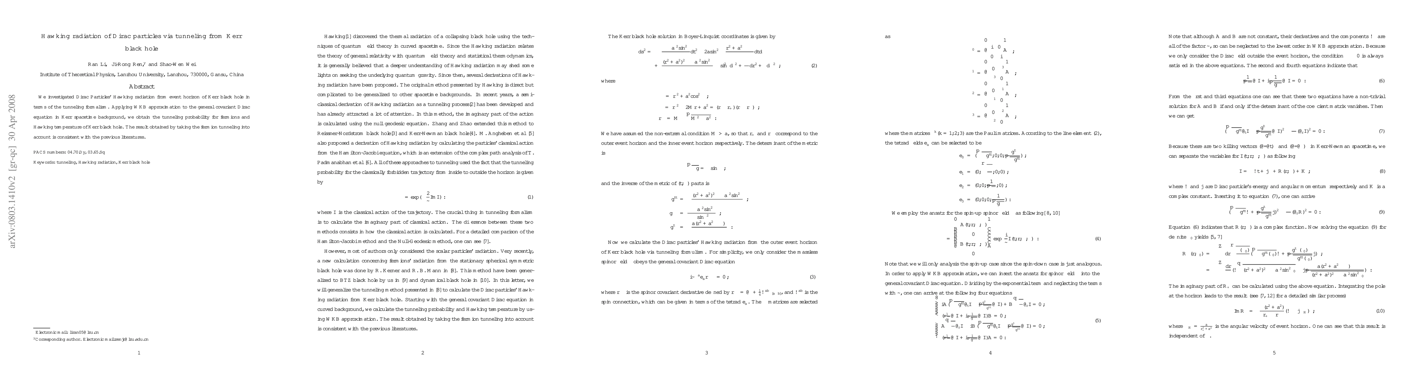 This paper examines Hawking radiation from a Kerr black hole for Dirac particles using the tunneling formalism, deriving the tunneling probability and Hawking temperature through the WKB approximation in Kerr spacetime, and finds results consistent with prior studies.