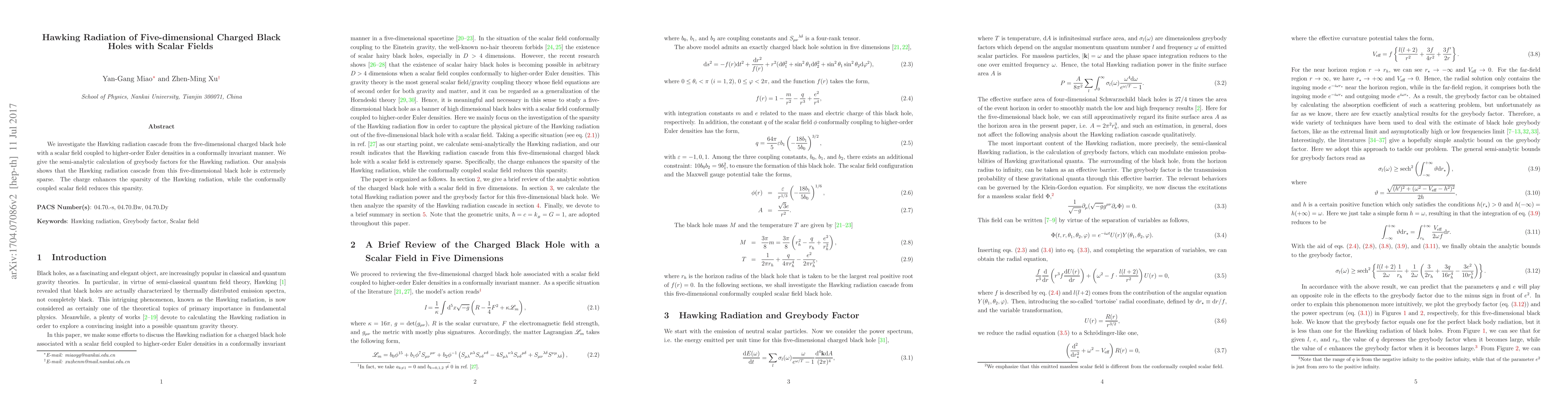 This paper explores the Hawking radiation from five-dimensional charged black holes with scalar fields linked to higher-order Euler densities. The study finds that the Hawking radiation cascade is sparse, with charge intensifying this sparsity and the conformally coupled scalar field mitigating it.