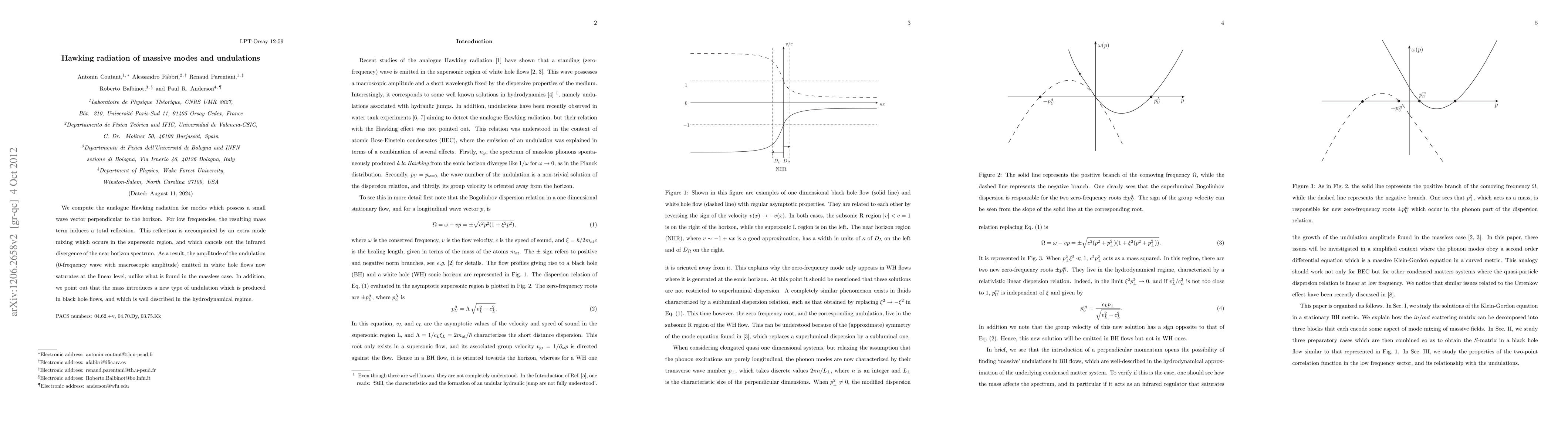 We compute the analogue Hawking radiation for modes which posses a small wave vector perpendicular to the horizon. For low frequencies, the resulting mass term induces a total reflection. This generates an extra mode mixing that occurs in the supersonic region, which cancels out the infrared divergence of the near horizon spectrum. As a result, the amplitude of the undulation (0-frequency wave with macroscopic amplitude) emitted in white hole flows now saturates at the linear level, unlike what was recently found in the massless case. In addition, we point out that the mass introduces a new type of undulation which is produced in black hole flows, and which is well described in the hydrodynamical regime.