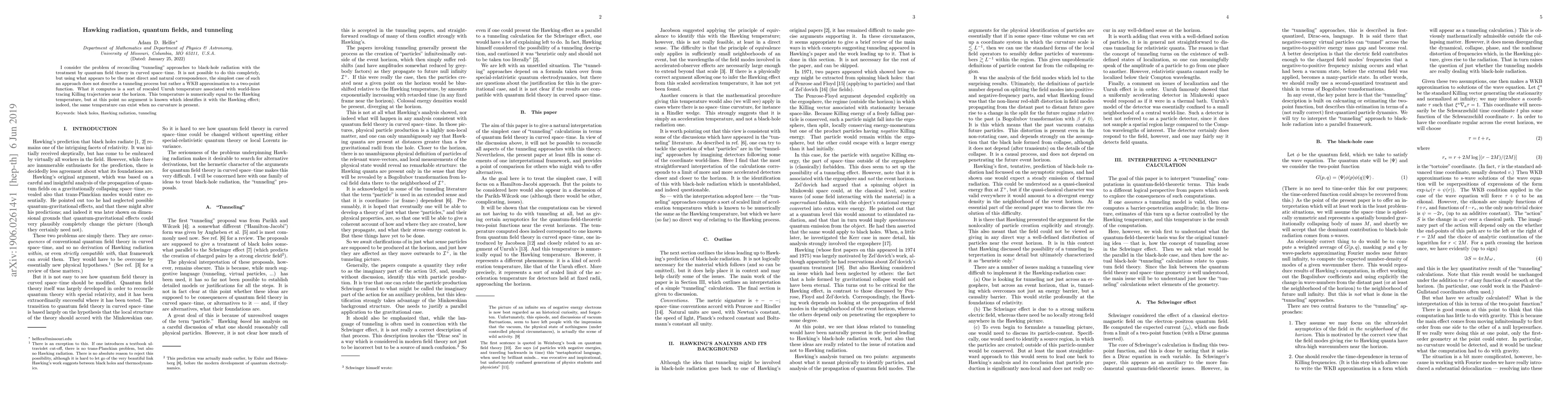 I consider the problem of reconciling "tunneling" approaches to black-hole radiation with the treatment by quantum field theory in curved space-time. It is not possible to do this completely, but using what appears to be the most direct and natural correspondence, the simplest case of such an approach does not describe a tunneling process but rather a WKB approximation to a two-point function. What it computes is a sort of rescaled Unruh temperature associated with world-lines tracing Killing trajectories near the horizon. This temperature is numerically equal to the Hawking temperature, but at this point no argument is known which identifies it with the Hawking effect; indeed, the same temperature can exist when no curvature is present.