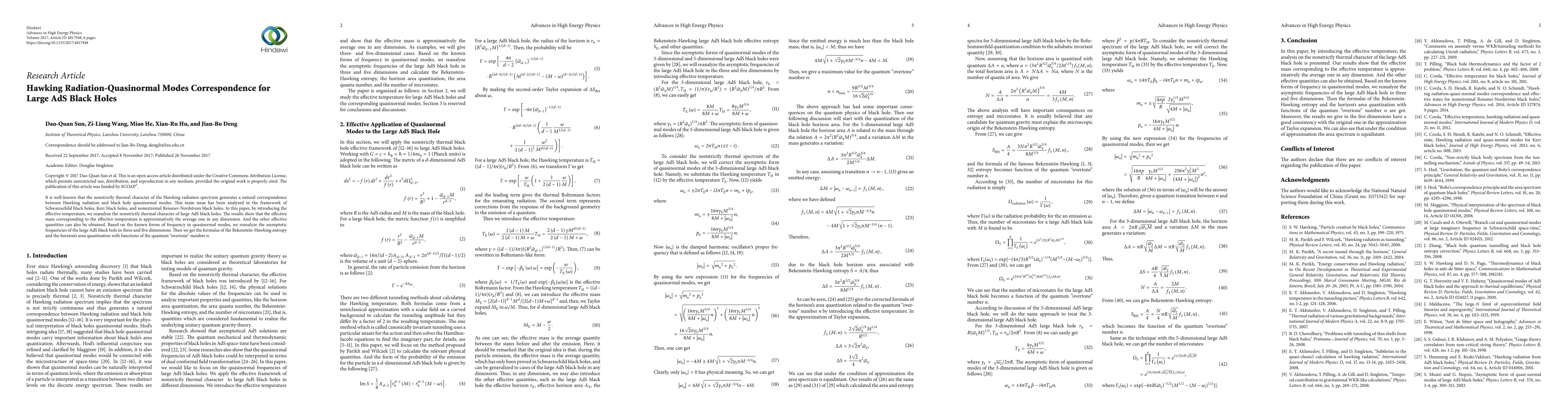 This paper investigates the correspondence between Hawking radiation and quasinormal modes for large AdS black holes, introducing an effective temperature to analyze the non-thermal spectrum. It derives formulas for Bekenstein-Hawking entropy and horizon area quantization as functions of the quantum "overtone" number $n$.