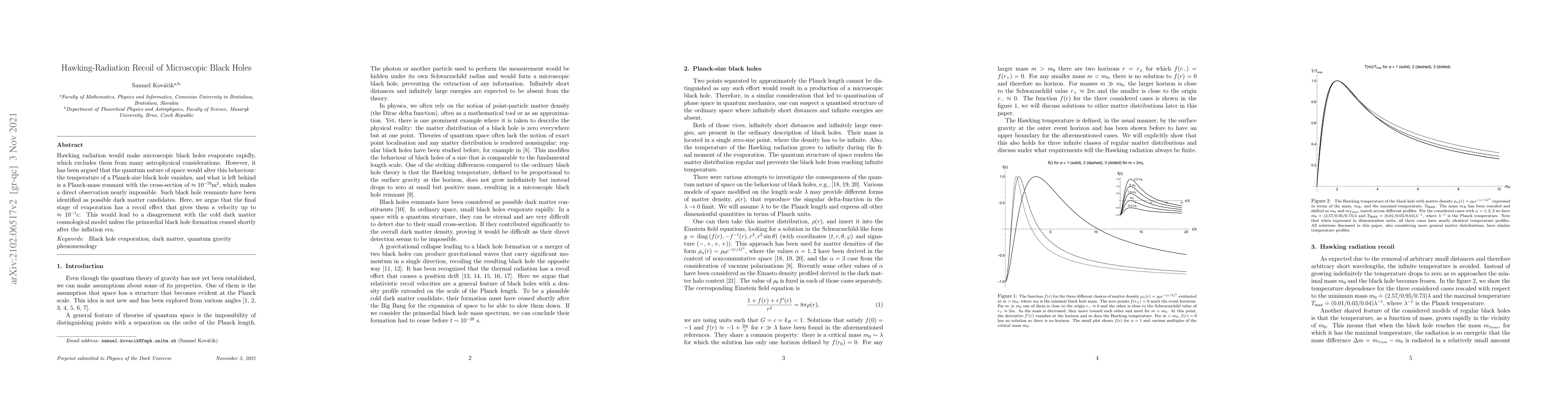 This paper discusses the recoil effect during the final evaporation stage of microscopic black holes, suggesting these remnants could have velocities up to 0.1c. This recoil might conflict with the cold dark matter cosmological model unless primordial black hole formation stopped shortly after inflation, proposing implications for dark matter theories.