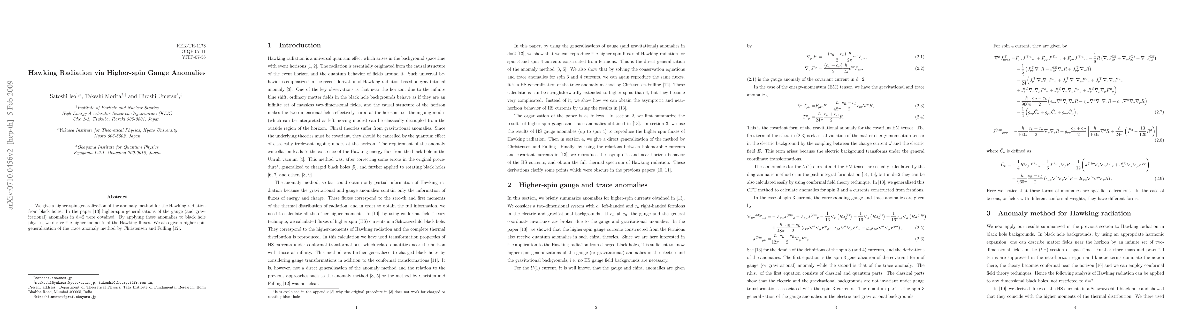 This paper generalizes the anomaly method to higher-spin gauge anomalies, applying these to derive higher moments of Hawking radiation from black holes, extending previous work from arXiv:0710.0453 and adapting the trace anomaly method for higher-spin fields.