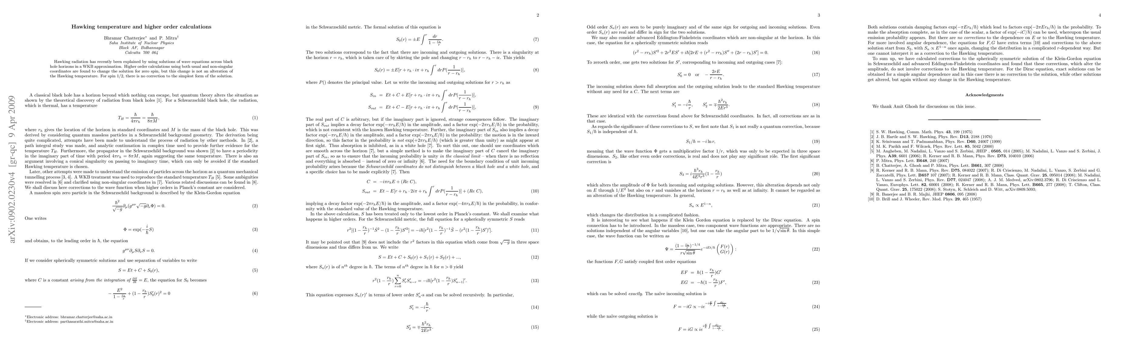 Hawking radiation has recently been explained by using solutions of wave equations across black hole horizons in a WKB approximation. Higher order calculations using both usual and non-singular coordinates are found to change the solution for zero spin, but this change is not an alteration of the Hawking temperature. For spin 1/2, there is no correction to the simplest form of the solution.