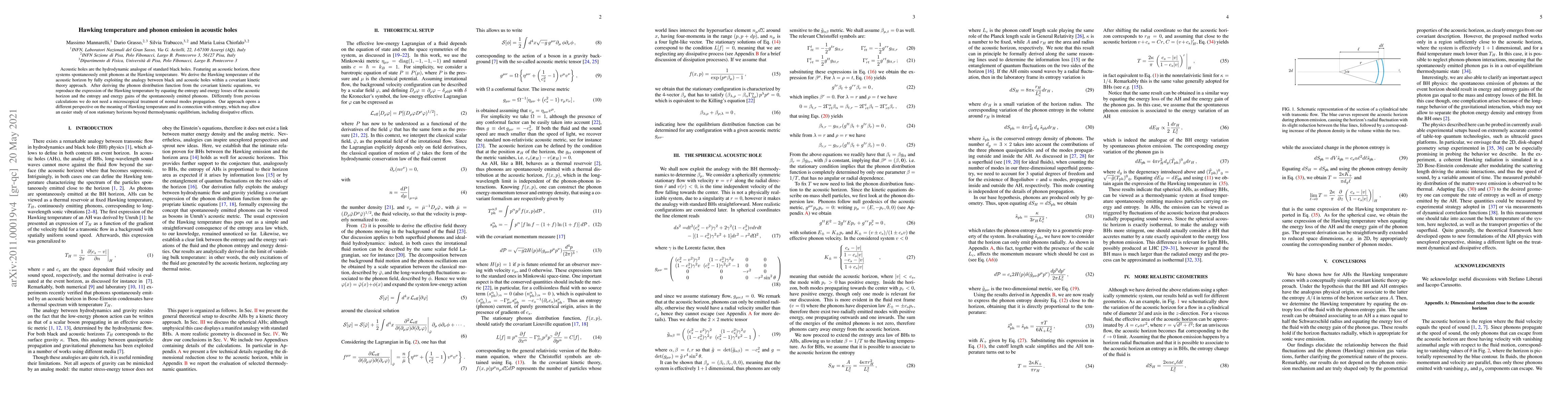 This paper derives the Hawking temperature for acoustic horizons using a covariant kinetic theory approach, demonstrating phonon emission analogous to black hole radiation without requiring detailed normal mode analysis. The findings provide a new perspective on Hawking temperature's connection to entropy, potentially facilitating studies of non-stationary horizons.