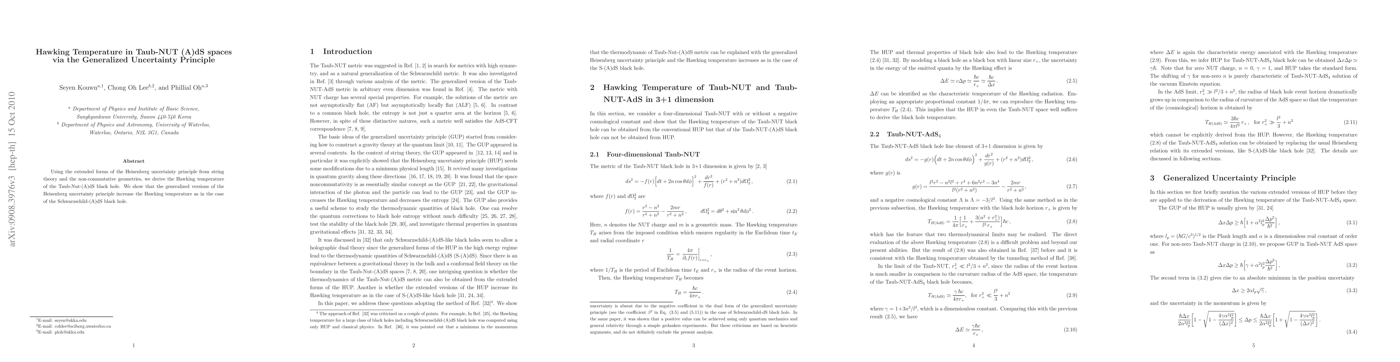 Summary: This paper derives the Hawking temperature of Taub-NUT (A)dS black holes using generalized uncertainty principles from string theory and quantum gravity. It demonstrates that despite unique properties like locally flat asymptotics and horizon area theorem breakdown, the temperature corrections behave similarly to Schwarzschild-(A)dS black holes, suggesting a possible AdS/CFT dual picture.