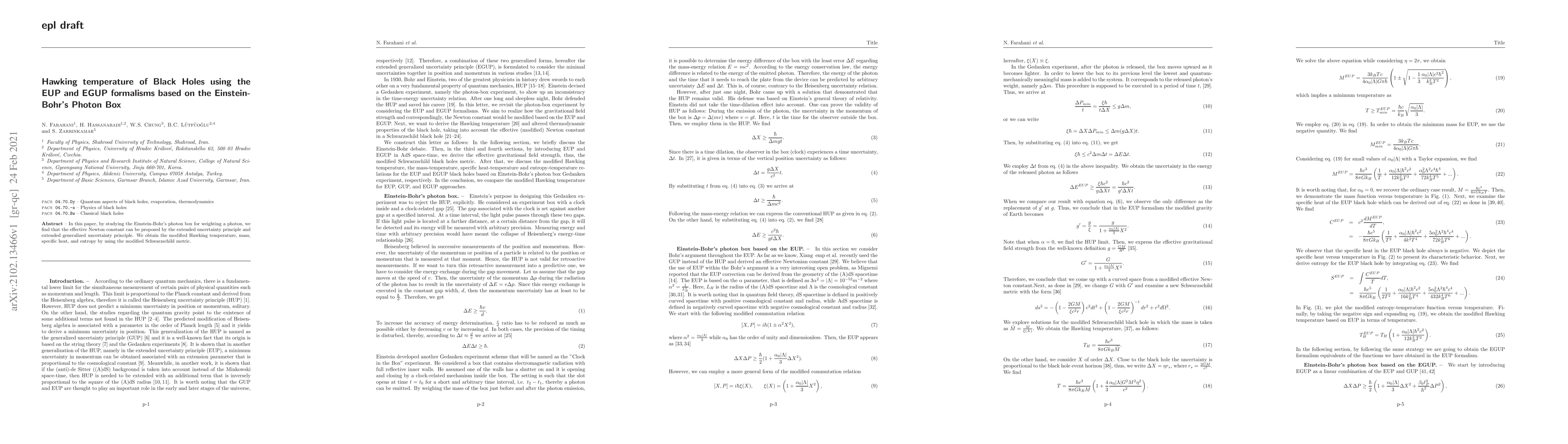 In this paper, by studying the Einstein-Bohr's photon box for weighting a photon, we find that the effective Newton constant can be proposed by the extended uncertainty principle and extended generalized uncertainty principle. We obtain the modified Hawking temperature, mass, specific heat, and entropy by using the modified Schwarzschild metric.