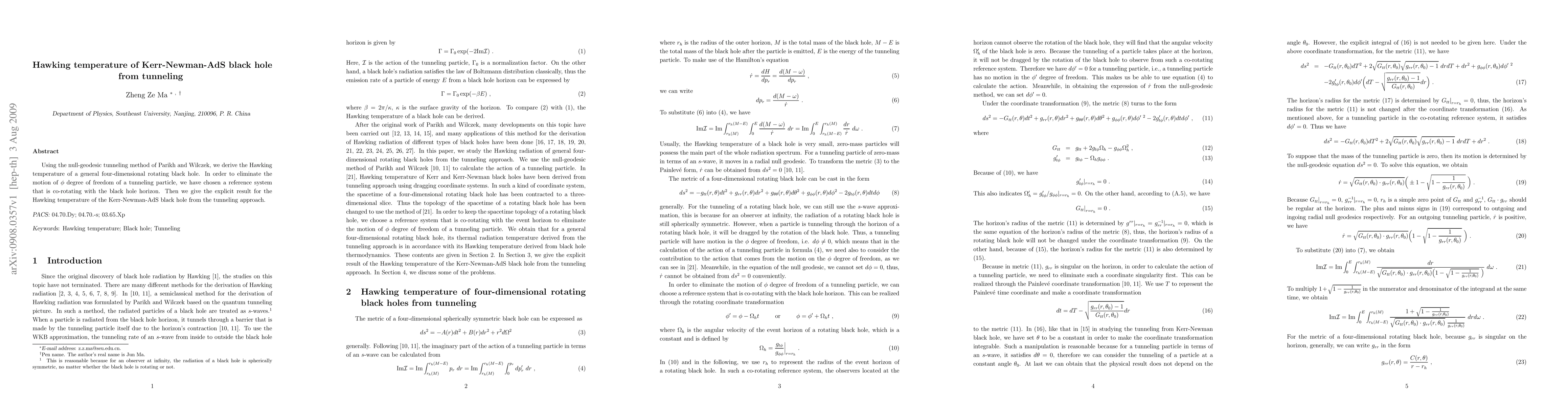 This paper derives the Hawking temperature of a four-dimensional Kerr-Newman-AdS black hole using the tunneling method of Parikh and Wilczek. By adopting a co-rotating reference frame with the black hole horizon, the authors eliminate the $\phi$ degree of freedom and provide a precise expression for the Hawking temperature from a tunneling perspective.