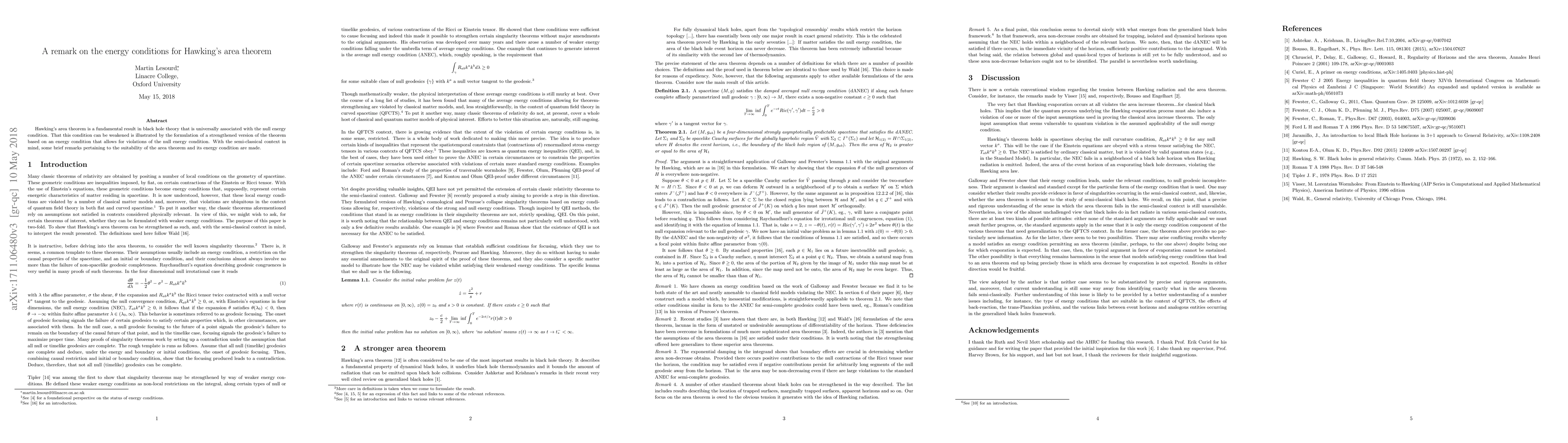 Researchers explore a weakened version of Hawking's area theorem, allowing for violations of the null energy condition, expanding its applicability in black hole theory.