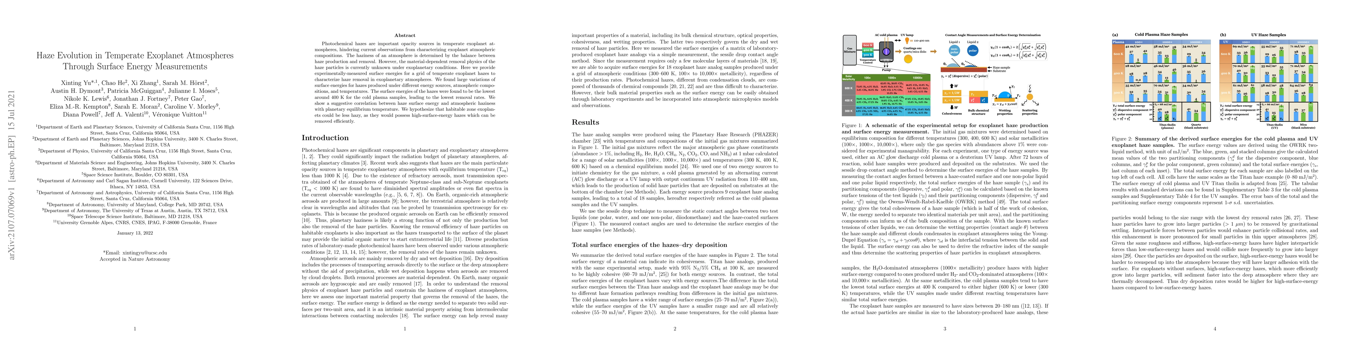 This study experimentally measures surface energies of temperate exoplanet hazes to understand haze removal dynamics. Findings indicate that hazes with lower surface energies, prevalent around 400 K, result in slower removal rates, suggesting that exoplanets in the habitable zone may experience less atmospheric haziness due to more efficiently removable, higher-surface-energy hazes.