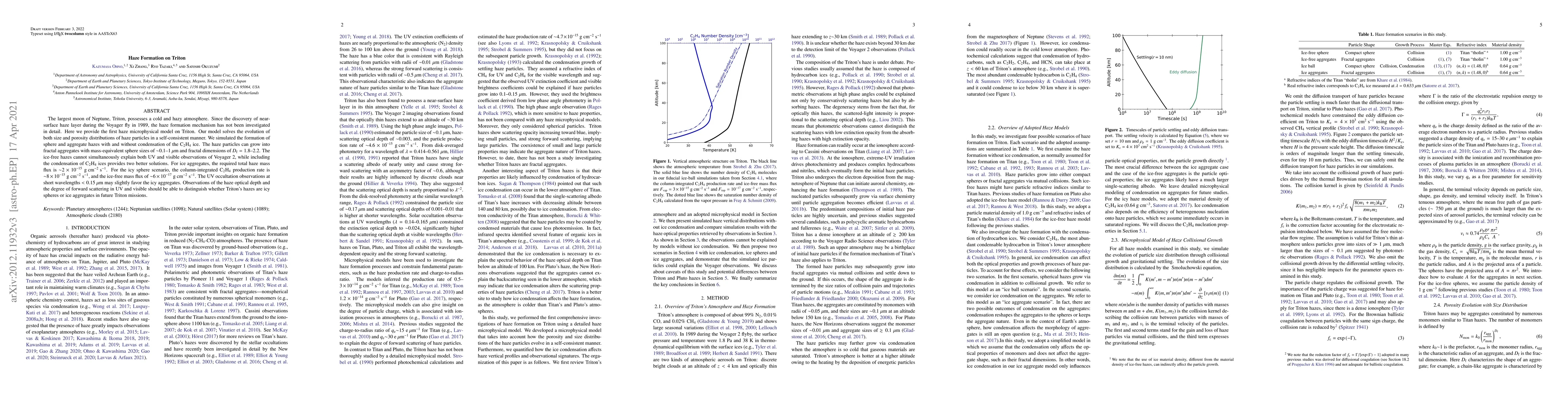 This paper presents a microphysical model for the haze formation on Triton, Neptune's largest moon, revealing the evolution of haze particle size and porosity. The model suggests that haze particles can form either as aggregates or spheres, with the inclusion of ethylene ice condensation providing better explanations for Voyager 2 observations.