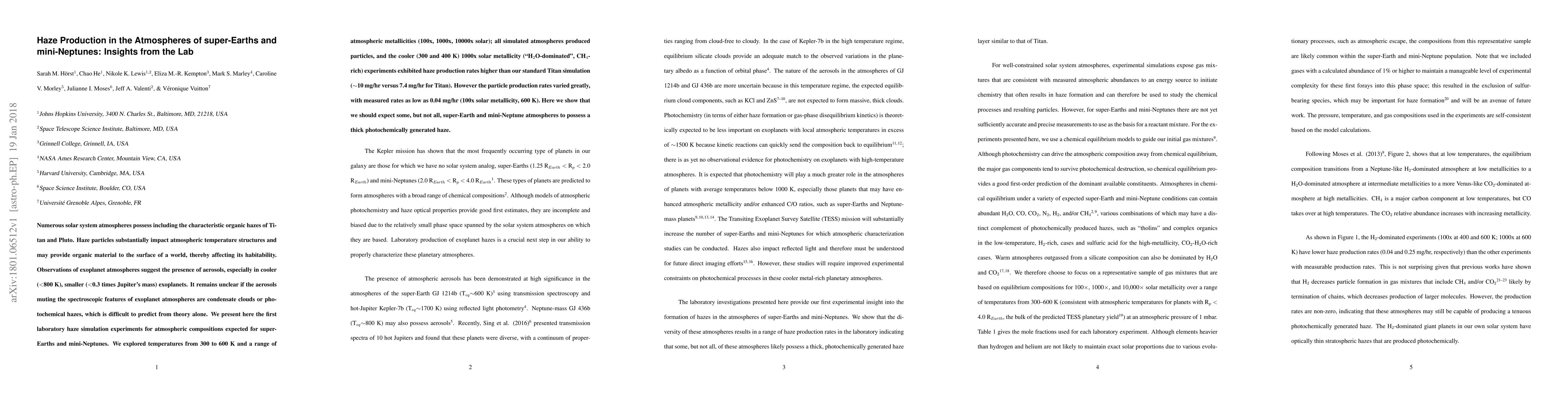 This study investigates laboratory simulations of haze formation in the atmospheres of super-Earths and mini-Neptunes, finding that cooler, higher metallicity atmospheres produce higher haze rates compared to Titan. The results suggest that while some of these exoplanets may develop thick photochemical hazes, the variability in production rates indicates not all will.
