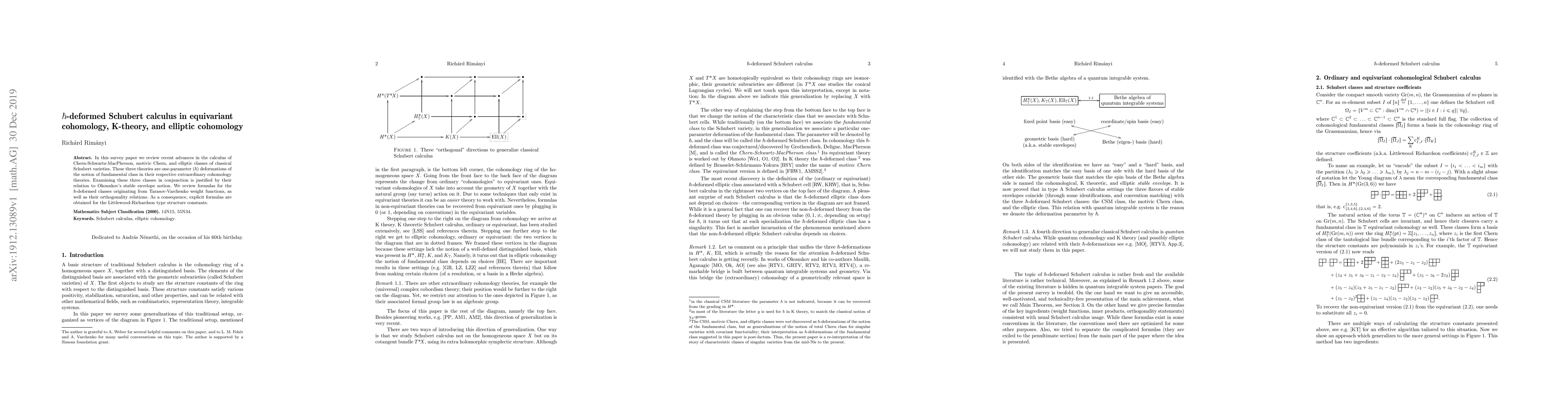 In this survey paper we review recent advances in the calculus of Chern-Schwartz-MacPherson, motivic Chern, and elliptic classes of classical Schubert varieties. These three theories are one-parameter ($\hbar$) deformations of the notion of fundamental class in their respective extraordinary cohomology theories. Examining these three classes in conjunction is justified by their relation to Okounkov's stable envelope notion. We review formulas for the $\hbar$-deformed classes originating from Tarasov-Varchenko weight functions, as well as their orthogonality relations. As a consequence, explicit formulas are obtained for the Littlewood-Richardson type structure constants.