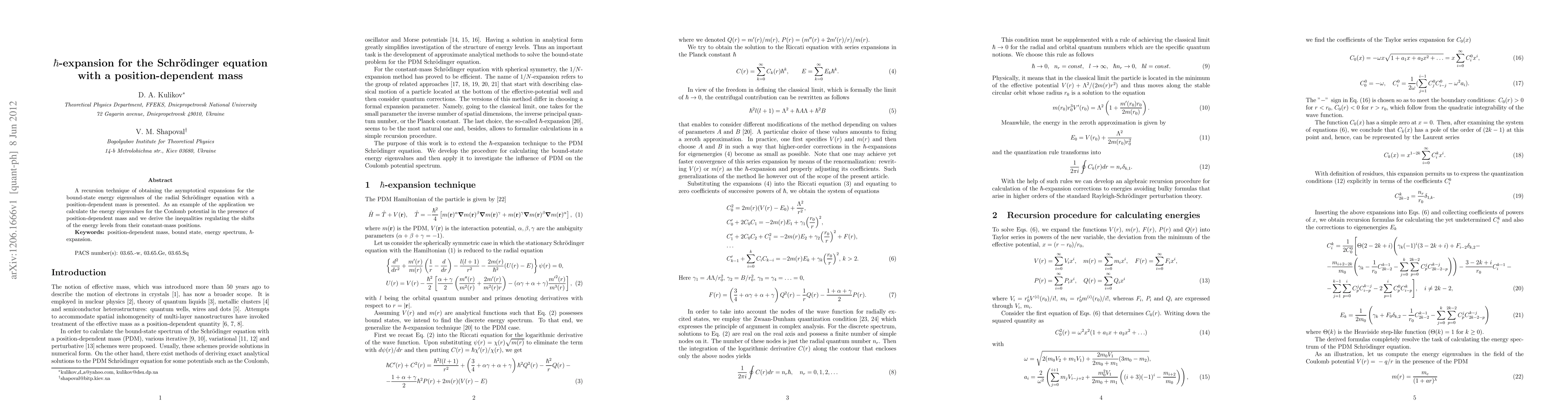 This paper presents a recursion method to derive asymptotic expansions for bound-state energy eigenvalues in the radial Schrödinger equation with a position-dependent mass. It applies this technique to the Coulomb potential, calculating energy eigenvalues and deriving inequalities for the shifts in energy levels compared to constant-mass scenarios.