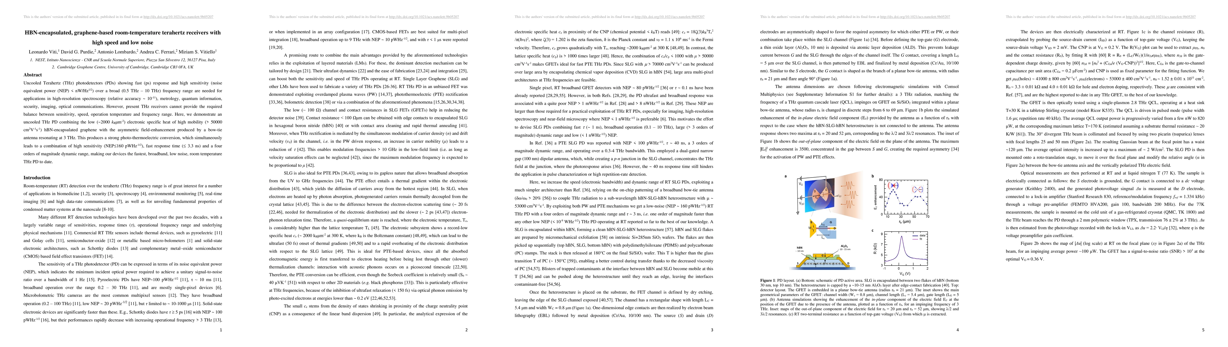 The paper presents a novel graphene-based terahertz photodetector with high sensitivity, fast response, and a broad dynamic range, utilizing hBN encapsulation and a bow-tie antenna for efficient photo-thermoelectric conversion.