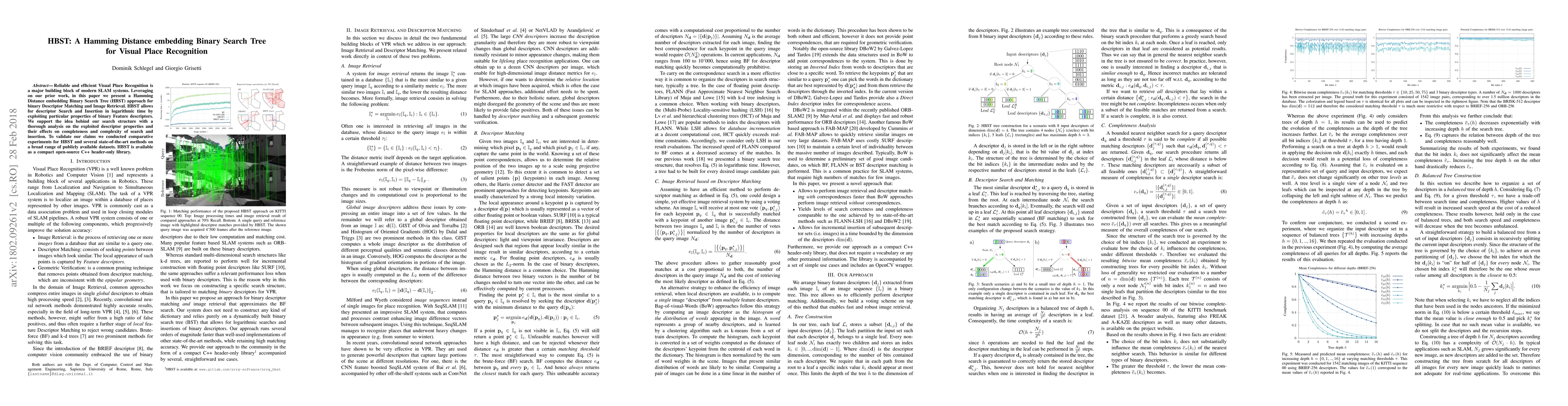Researchers developed a new Visual Place Recognition method called HBST, which uses a binary search tree to efficiently match images using Hamming Distance embedding, outperforming existing state-of-the-art methods on various datasets.