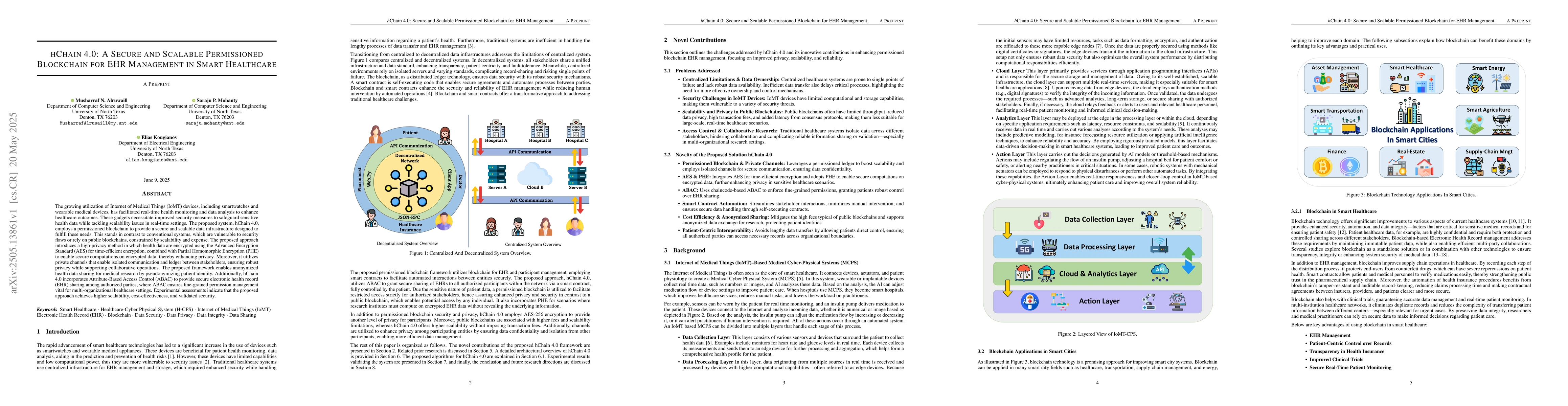 This research is crucial for addressing the growing security and scalability concerns in smart healthcare, where IoMT devices generate vast amounts of sensitive data. hChain 4.0's secure and efficient EHR management can significantly improve healthcare outcomes by ensuring data privacy and integrity while facilitating collaborative research.