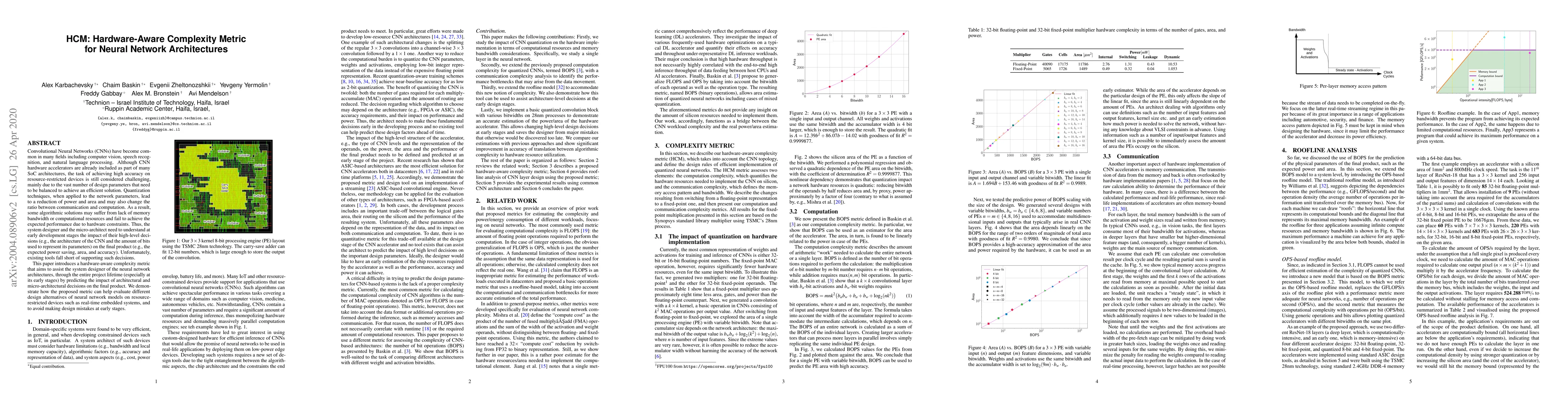 Convolutional Neural Networks (CNNs) have become common in many fields including computer vision, speech recognition, and natural language processing. Although CNN hardware accelerators are already included as part of many SoC architectures, the task of achieving high accuracy on resource-restricted devices is still considered challenging, mainly due to the vast number of design parameters that need to be balanced to achieve an efficient solution. Quantization techniques, when applied to the network parameters, lead to a reduction of power and area and may also change the ratio between communication and computation. As a result, some algorithmic solutions may suffer from lack of memory bandwidth or computational resources and fail to achieve the expected performance due to hardware constraints. Thus, the system designer and the micro-architect need to understand at early development stages the impact of their high-level decisions (e.g., the architecture of the CNN and the amount of bits used to represent its parameters) on the final product (e.g., the expected power saving, area, and accuracy). Unfortunately, existing tools fall short of supporting such decisions. This paper introduces a hardware-aware complexity metric that aims to assist the system designer of the neural network architectures, through the entire project lifetime (especially at its early stages) by predicting the impact of architectural and micro-architectural decisions on the final product. We demonstrate how the proposed metric can help evaluate different design alternatives of neural network models on resource-restricted devices such as real-time embedded systems, and to avoid making design mistakes at early stages.