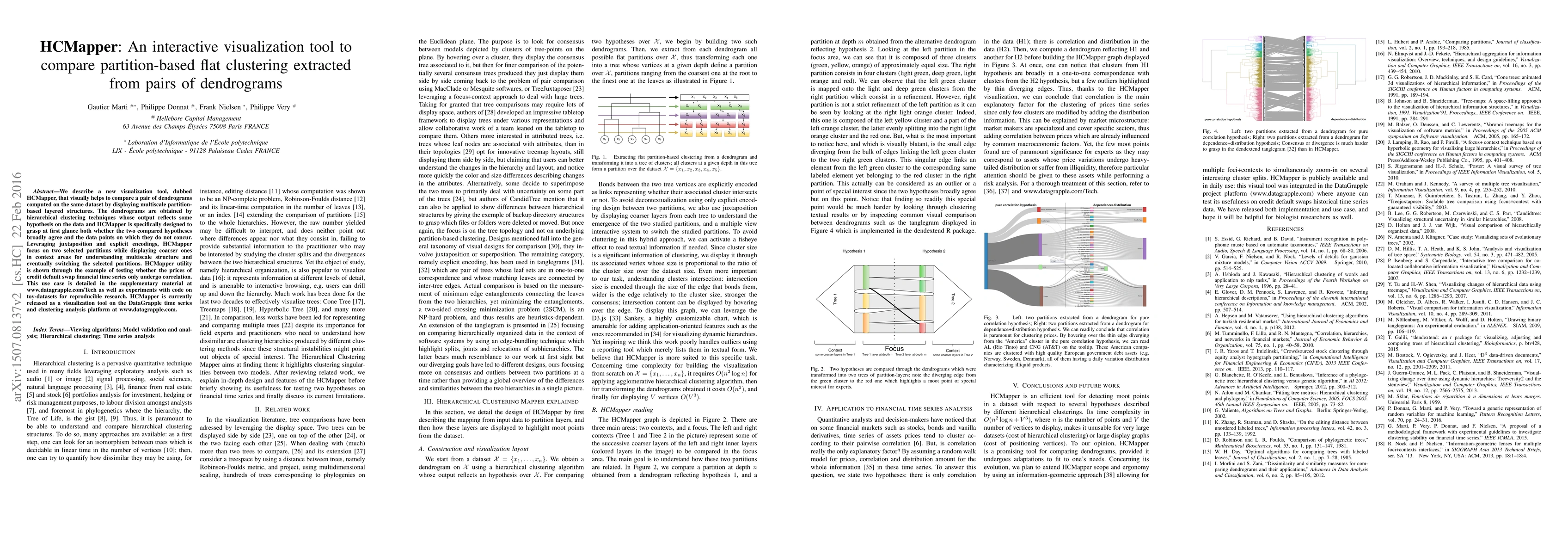 HCMapper is an interactive visualization tool that compares pair of dendrograms on same dataset, helping users grasp agreement and discrepancies between clustering hypotheses.