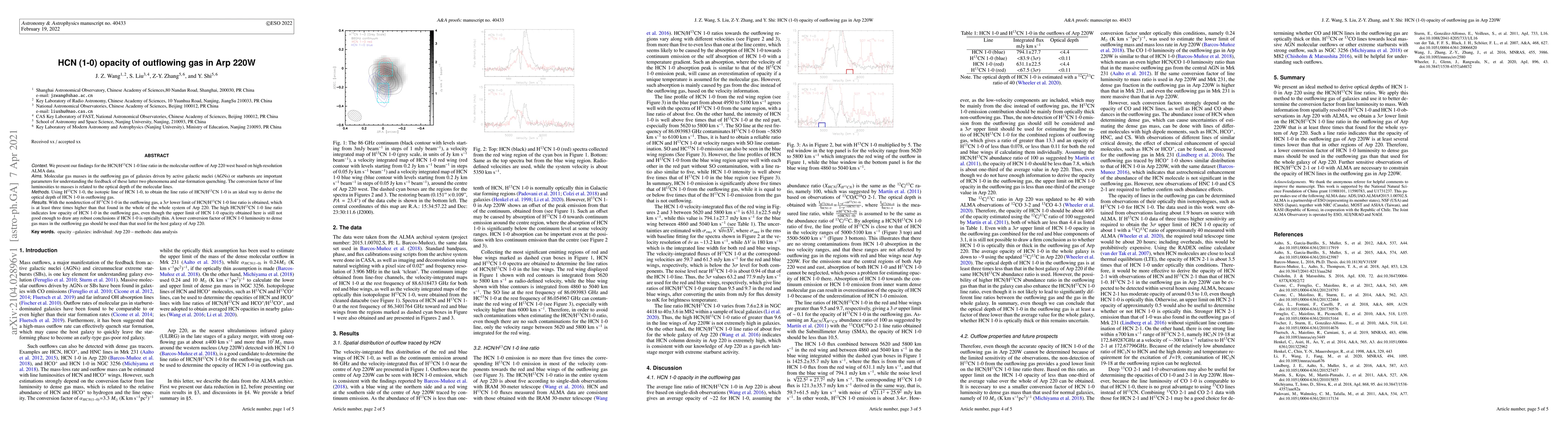 This study uses high-resolution ALMA data to analyze the HCN/H13CN 1-0 line ratio in Arp 220W's molecular outflow, finding a high HCN/H13CN 1-0 ratio indicating low opacity of HCN 1-0 in the outflowing gas, suggesting a lower conversion factor for HCN 1-0 luminosity to dense gas mass in the outflow compared to the host galaxy.