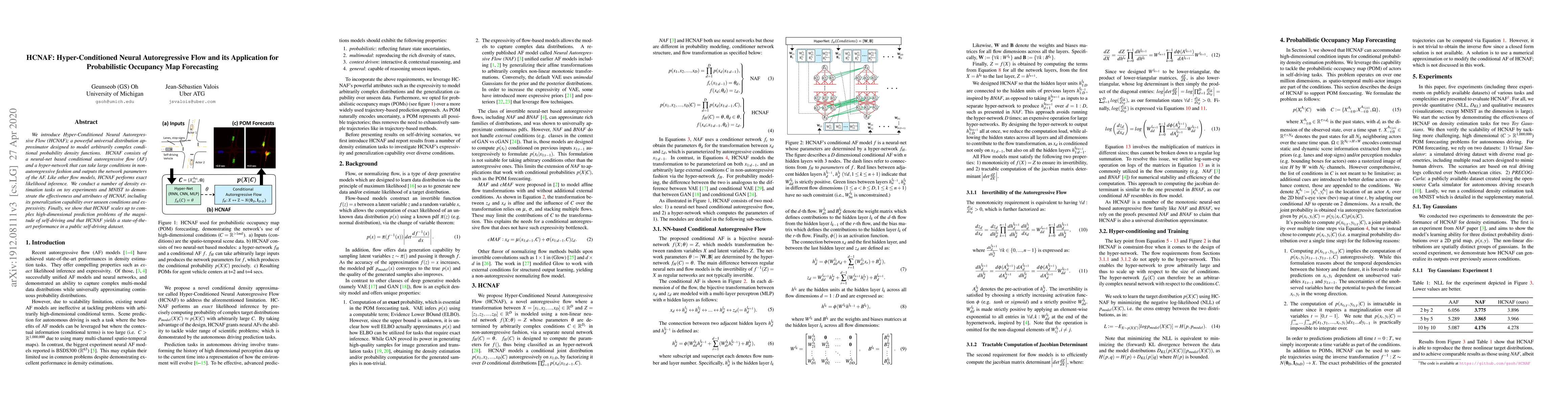 We introduce Hyper-Conditioned Neural Autoregressive Flow (HCNAF); a powerful universal distribution approximator designed to model arbitrarily complex conditional probability density functions. HCNAF consists of a neural-net based conditional autoregressive flow (AF) and a hyper-network that can take large conditions in non-autoregressive fashion and outputs the network parameters of the AF. Like other flow models, HCNAF performs exact likelihood inference. We conduct a number of density estimation tasks on toy experiments and MNIST to demonstrate the effectiveness and attributes of HCNAF, including its generalization capability over unseen conditions and expressivity. Finally, we show that HCNAF scales up to complex high-dimensional prediction problems of the magnitude of self-driving and that HCNAF yields a state-of-the-art performance in a public self-driving dataset.