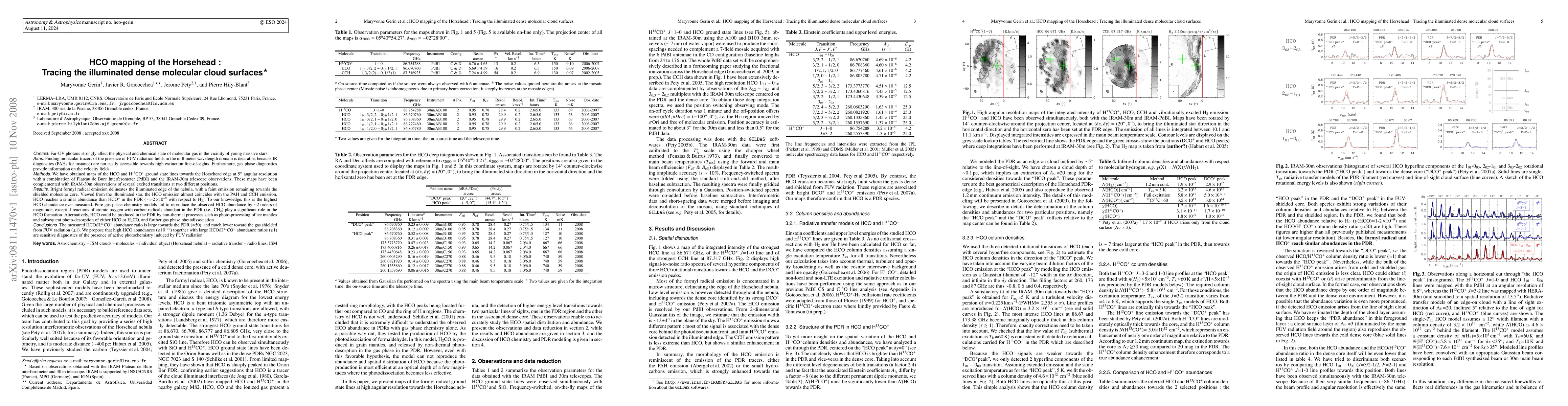 This study maps HCO and H13CO+ lines in the Horsehead Nebula to trace the illuminated dense molecular cloud surfaces. The HCO emission highlights the nebula's edge, indicating active photochemistry driven by far-UV photons, while pure gas-phase chemistry models fall short in explaining the observed HCO abundances.