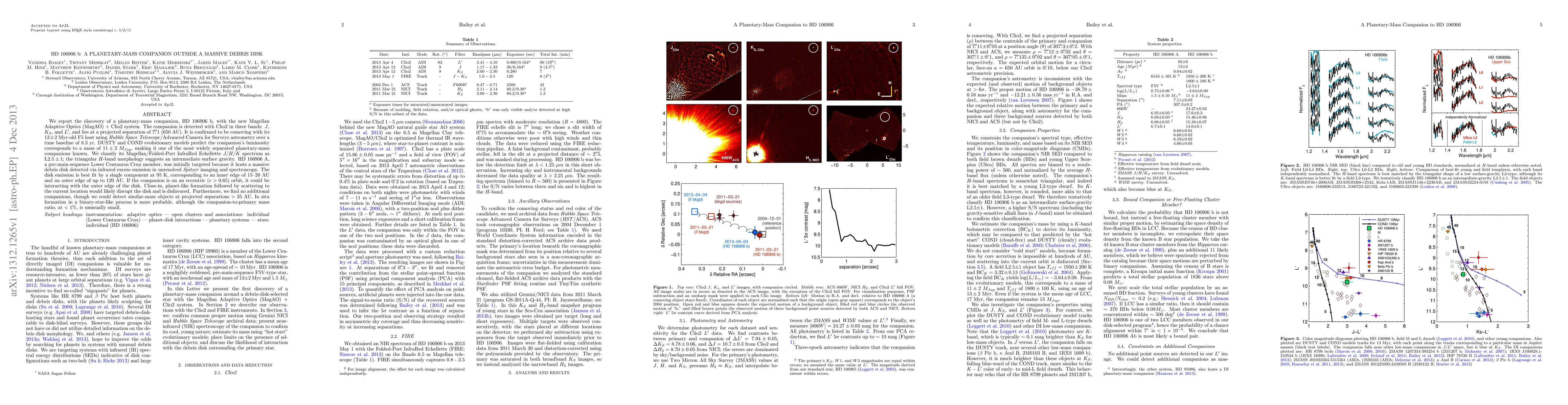 The research discovers HD 106906 b, a massive planetary-mass companion located at 650 AU from its host star, detected via adaptive optics and confirmed as comoving. The companion's large separation and low mass ratio suggest an in situ formation process rather than scattering, and it may interact with the host's massive debris disk.